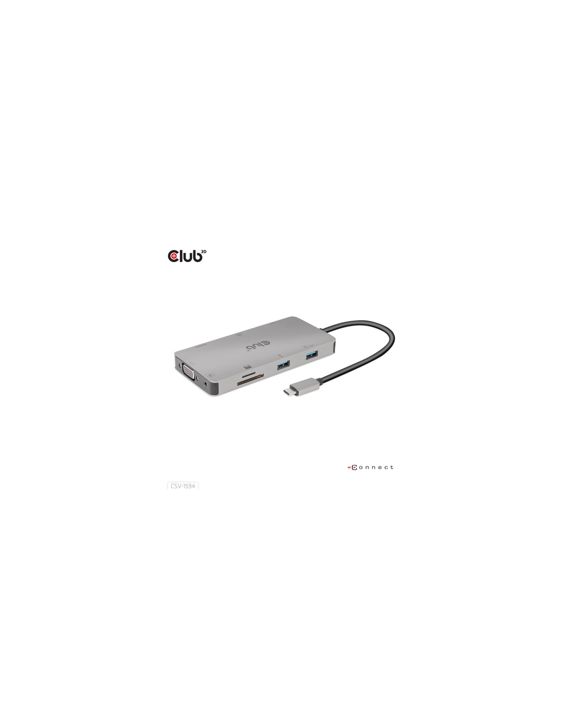 CLUB3D CSV-1594. Interfaccia host: USB 3.2 Gen 1 (3.1 Gen 1) Type-C, Fornitura di alimentazione USB fino a: 100 W. Velocità trasferimento Ethernet LAN: 10,100,1000 Mbit/s. Colore del prodotto: Nero, Grigio, Tipi schede di memoria: MicroSD (TransFlash), SD, Tempo massimo di refresh: 60 Hz. Voltaggio di uscita: 5 V, Corrente d'uscita: 1,8 A, Consumo energetico (max): 7,5 W. Larghezza: 125 mm, Profondità: 59 mm, Altezza: 14 mm