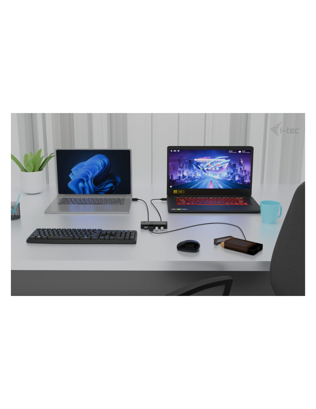 Se devi collegare dispositivi e periferiche USB a due computer e vuoi anche condividerli tra loro, hai trovato la soluzione perfetta. Questo HUB ti offre 4 porte USB aggiuntive (2x USB-A e 2x USB-C) che puoi facilmente assegnare, con il semplice tocco di un pulsante, al PC 1 o al PC 2.