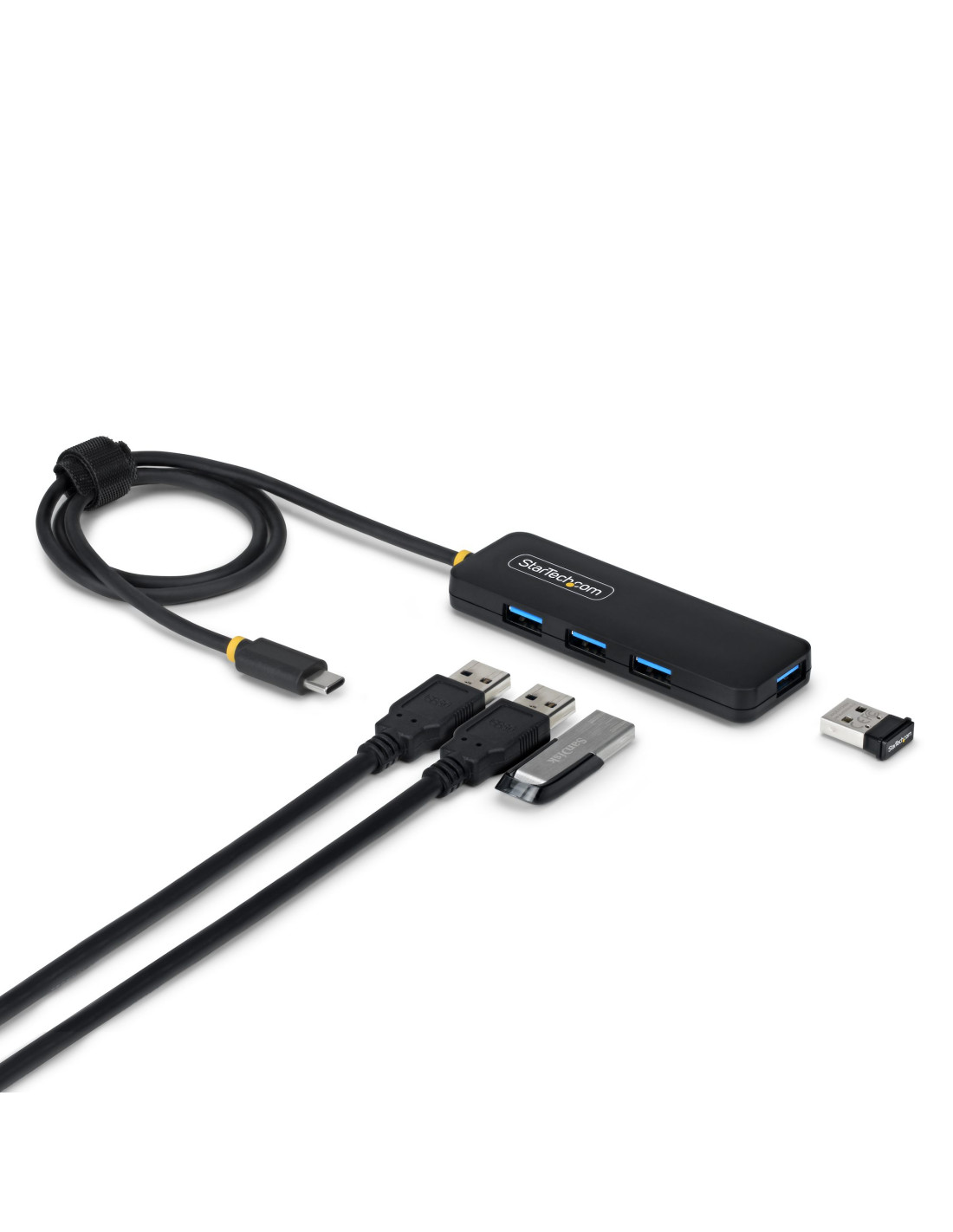 Aggiungi fino a quattro dispositivi USB 3.0 al tuo laptop o PC utilizzando una singola porta USB-C.