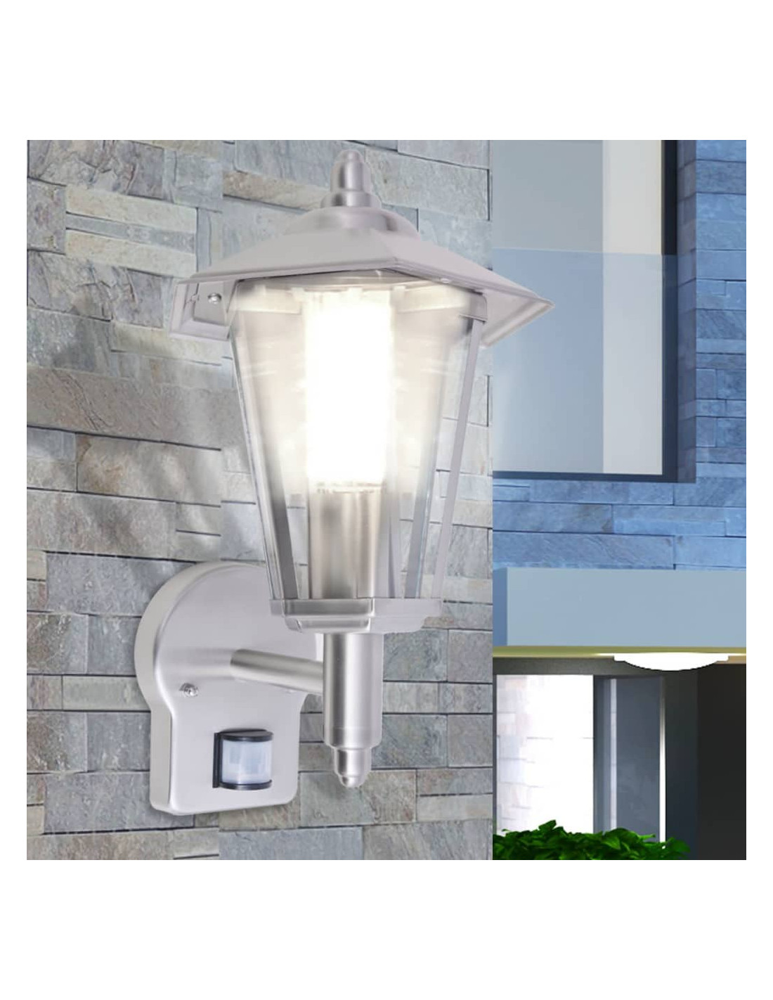 Questa elegante lampada da parete ha un design classico senza tempo che si adatta a qualsiasi proprietà. Emette una luce attraente la sera e può essere utilizzata in ambienti esterni residenziali o commerciali. Questa lanterna da parete è progettata con un sensore di movimento PIR (Infrarossi passivi), che attiva la luce quando rileva un movimento. Ha un angolo di rilevazione fino a 120° e un raggio di azione fino a 10 m². La durata di accensione della luce e regolabile da 8 sec. a 3,5 min. Grazie al suo corpo in acciaio inox con un diffusore in vetro trasparente, questa lanterna da parete esce subito in evidenza. Con una valutazione IP44, questa luce da muro è resistente alle intemperie, robusta e durevole. Pertanto, è estremamente adatta per l'uso esterno. Questa lanterna da parete per esterno è adatta per bulbi CFL (a risparmio energetico) con una potenza massima di 11 W o per bulbi GLS (lampadine usuali) con una potenza massima di 60 W. Si prega di notare che il bulbo non è incluso alla consegna.