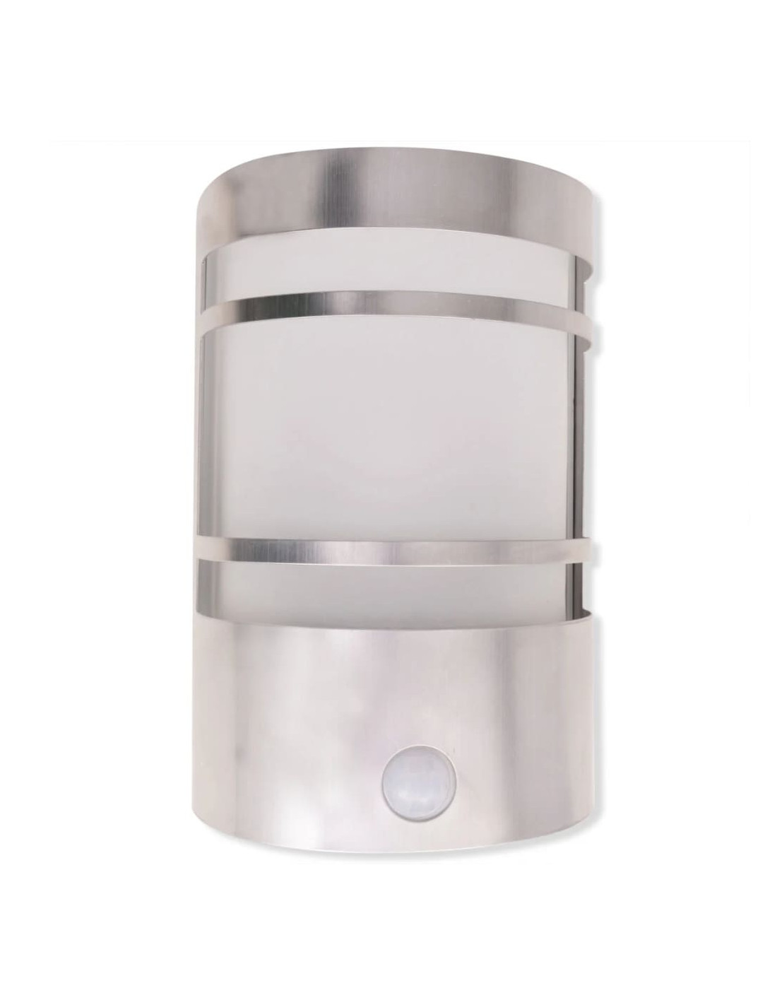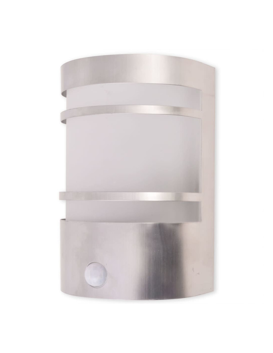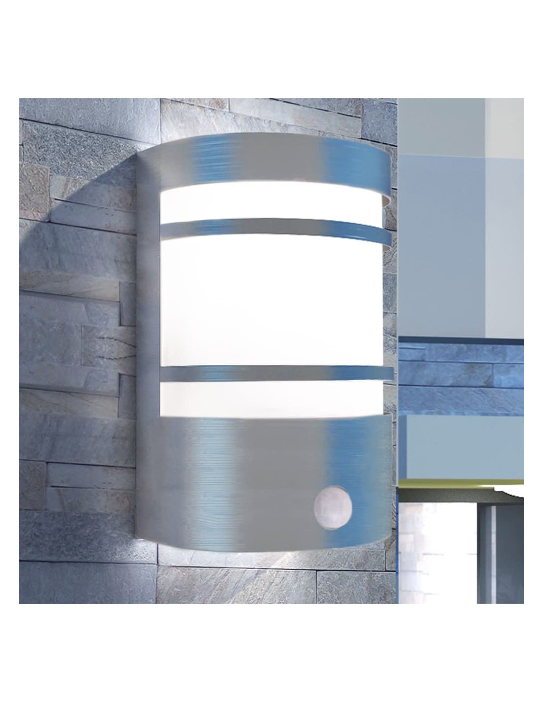 Questa lampada elegante da parete per esterno con forma semi-cilindrica, non solo è ideale per illuminare i giardini, vialetti o verande durante la notte, ma incrementerà le vostre decorazioni esterne. Questa lampada da parete è progettata con un sensore di movimento PIR (Infrarossi passivi), che attiva la luce quando rileva un movimento. Ha un angolo di rilevazione fino a 120° e un raggio di azione fino a 10 m². La durata di accensione della luce e regolabile da 8 sec. a 3,5 min. Con squisite linee minimali e un diffusore in vetro, questa elegante lampada da esterno per parete ha un sacco di fascino decorativo. Grazie al corpo in acciaio inox con un classificazione IP 44, questa lampada da parete è resistente alle intemperie, robusta e durevole, quindi estremamente adatta per l'uso esterno. Questa lampada da parete per esterno è adatta per bulbi CFL (a risparmio energetico) con una potenza massima di 11 W. Si prega di notare che il bulbo non è incluso alla consegna.