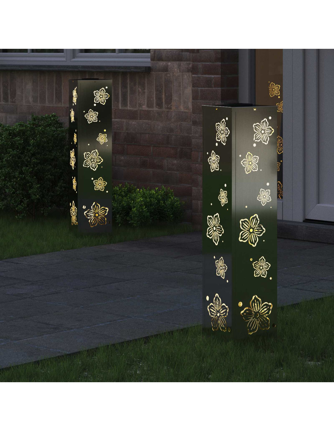 - Materiali: Fatte in acciaio di alta qualità, queste luci da sentiero sono molto robuste e resistenti agli agenti atmosferici. Con un design moderno, si integrano perfettamente nel paesaggio e garantiscono resistenza e longevità. Anche col tempo, manterranno il loro fascino.