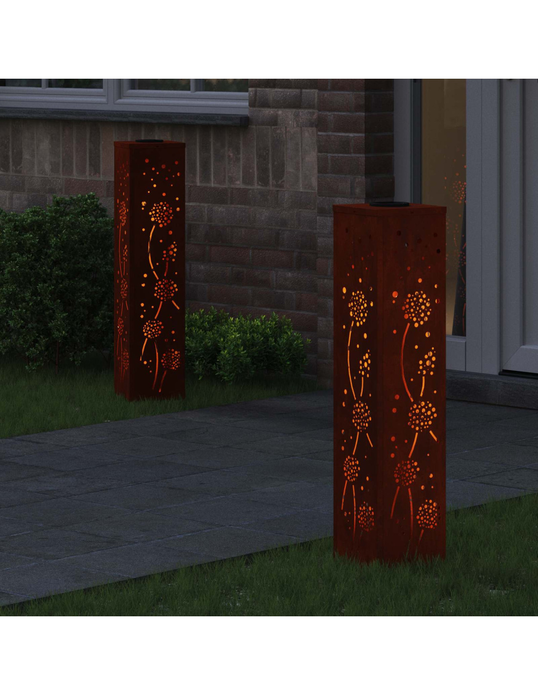 - Materiali: Fatte in acciaio di alta qualità, queste luci da sentiero sono molto robuste e resistenti agli agenti atmosferici. Con un design moderno, si integrano perfettamente nel paesaggio e garantiscono resistenza e longevità. Anche col tempo, manterranno il loro fascino.