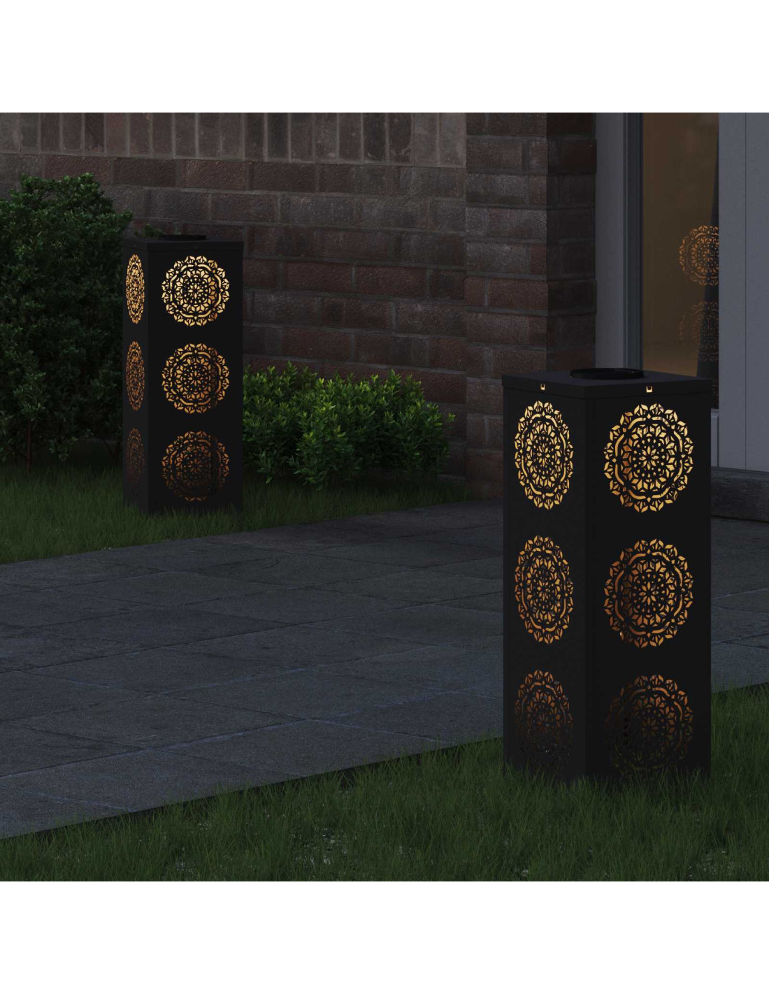 - Materiali: Fatte in acciaio di alta qualità, queste luci da sentiero sono molto robuste e resistenti agli agenti atmosferici. Con un design moderno, si integrano perfettamente nel paesaggio e garantiscono resistenza e longevità. Anche col tempo, manterranno il loro fascino.