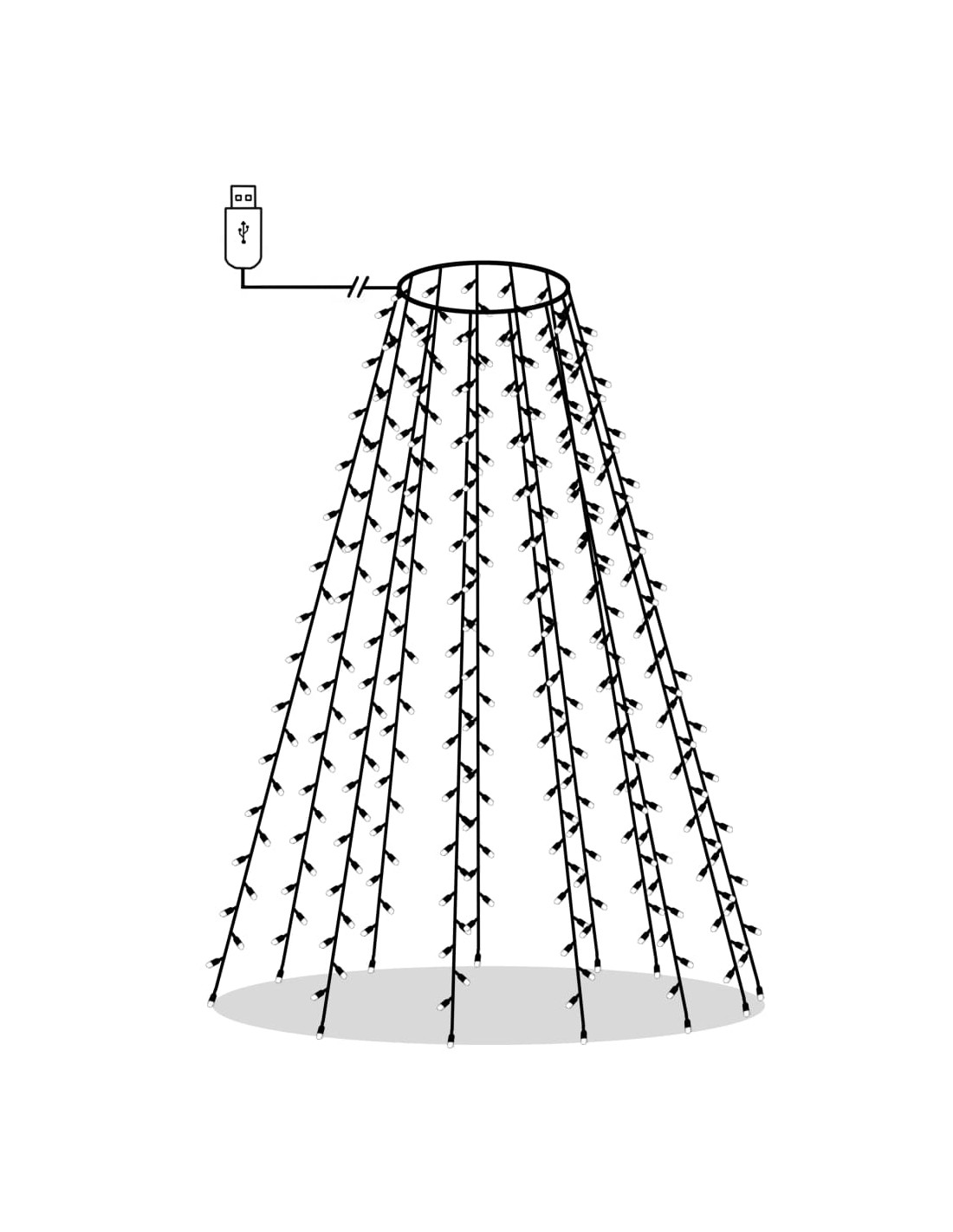 Si prega di notare che l'albero di Natale e le decorazioni non sono incluse nella consegna. Nota: l'USB incluso non è impermeabile, quindi questa parte deve evitare l'acqua, ma grazie al cavo di prolunga da 5 m la luce può essere utilizzata all'aperto poiché il cavo e il prodotto sono impermeabili.