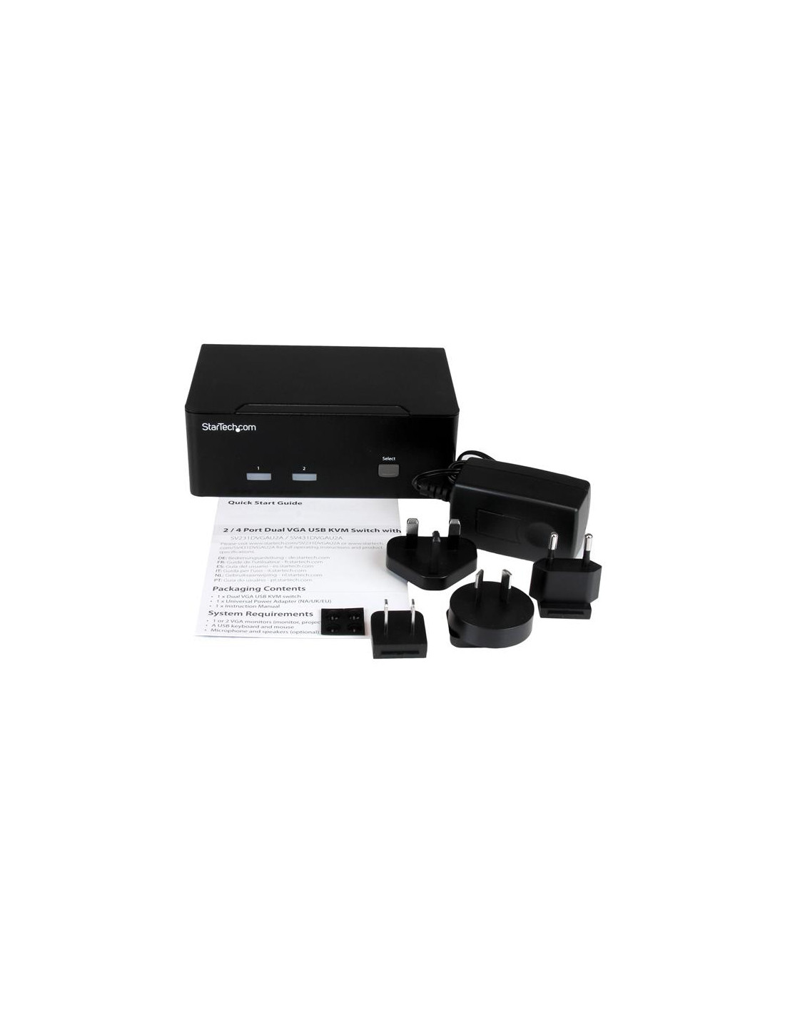 Lo switch KVM USB permette di collegare due computer, ciascuno con doppie uscite VGA, a una stazione di lavoro con doppio monitor. È possibile commutare la stazione di lavoro tra ciascun computer, oltre a due periferiche USB supplementari e altoparlanti e microfono da 3,5 mm. Massimizzare la produttività con doppio video Grazie al supporto per due ingressi video VGA e due diversi computer, questo switch KVM massimizza la produttività. Non solo è possibile accedere a diversi computer, ma anche utilizzare due monitor VGA su ciascuno di essi e trasmettere contenuti indipendenti su ogni display, avendo la libertà del multitasking e aumentando la produttività. Le porte VGA supportano risoluzioni fino a 1920x1200 per il massimo spazio di visualizzazione sullo schermo. Accesso a più sistemi Essendo dotato di doppio video e supporto per tastiera e mouse, nonché di un hub USB a 2 porte per due periferiche aggiuntive, questo switch KVM è ideale per l'accesso a due sistemi separati utilizzando la stessa stazione di lavoro. Il supporto per la stazione di lavoro più due periferiche aggiuntive rende questo switch KVM la soluzione ideale per il controllo server, semplificando l’accesso a più sistemi informatici. Funzionamento senza problemi Questo switch KVM a 2 porte assicura semplicità di funzionamento con controllo intuitivo mediante tasti di scelta rapida. Fornisce una soluzione semplice ma completa per la commutazione tra ogni computer collegato e supporta inoltre il funzionamento manuale mediante pulsanti di facile accesso situati sul lato anteriore dello switch.