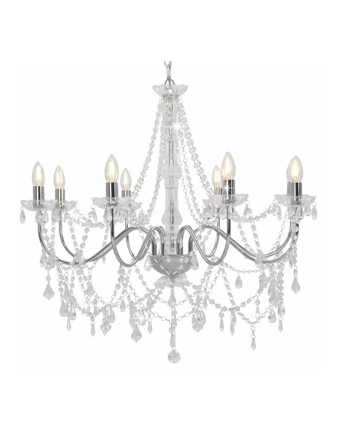 - Colore: Argento (base lampadario) + trasparente (gocce)