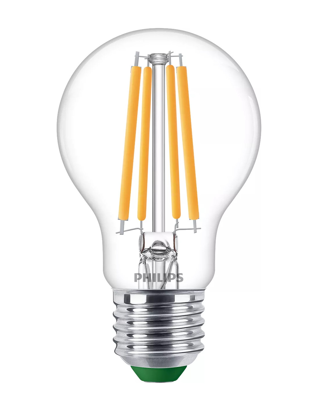Philips Lampadina trasparente a filamento 60 W A60 E27. Potenza lampadina: 4 W, Lampadina di potenza equivalente: 60 W, Attacco lampada: E27, Flusso luminoso: 840 lm, Durata della lampadina: 50000 h, Colore della luce: Bianco caldo, Temperatura colore: 2700 K, Angolo proiezione: 300°, Color Rendering Index (CRI): 80, Fattore di potenza: 0,4