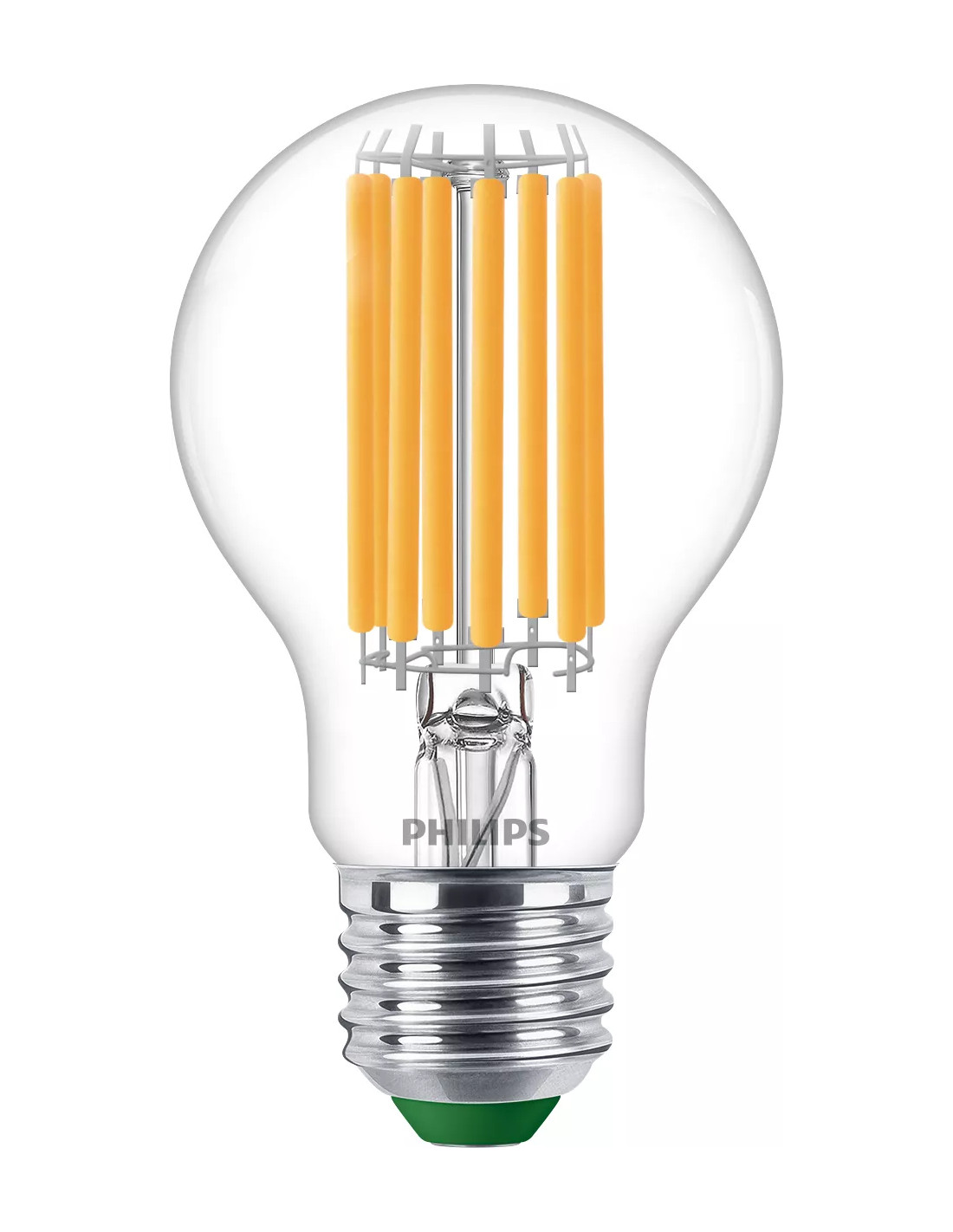 Philips Lampadina trasparente a filamento 100 W A60 E27. Potenza lampadina: 7,3 W, Lampadina di potenza equivalente: 100 W, Attacco lampada: E27, Flusso luminoso: 1535 lm, Durata della lampadina: 50000 h, Colore della luce: Bianco caldo, Temperatura colore: 2700 K, Angolo proiezione: 300°, Color Rendering Index (CRI): 80, Fattore di potenza: 0,4