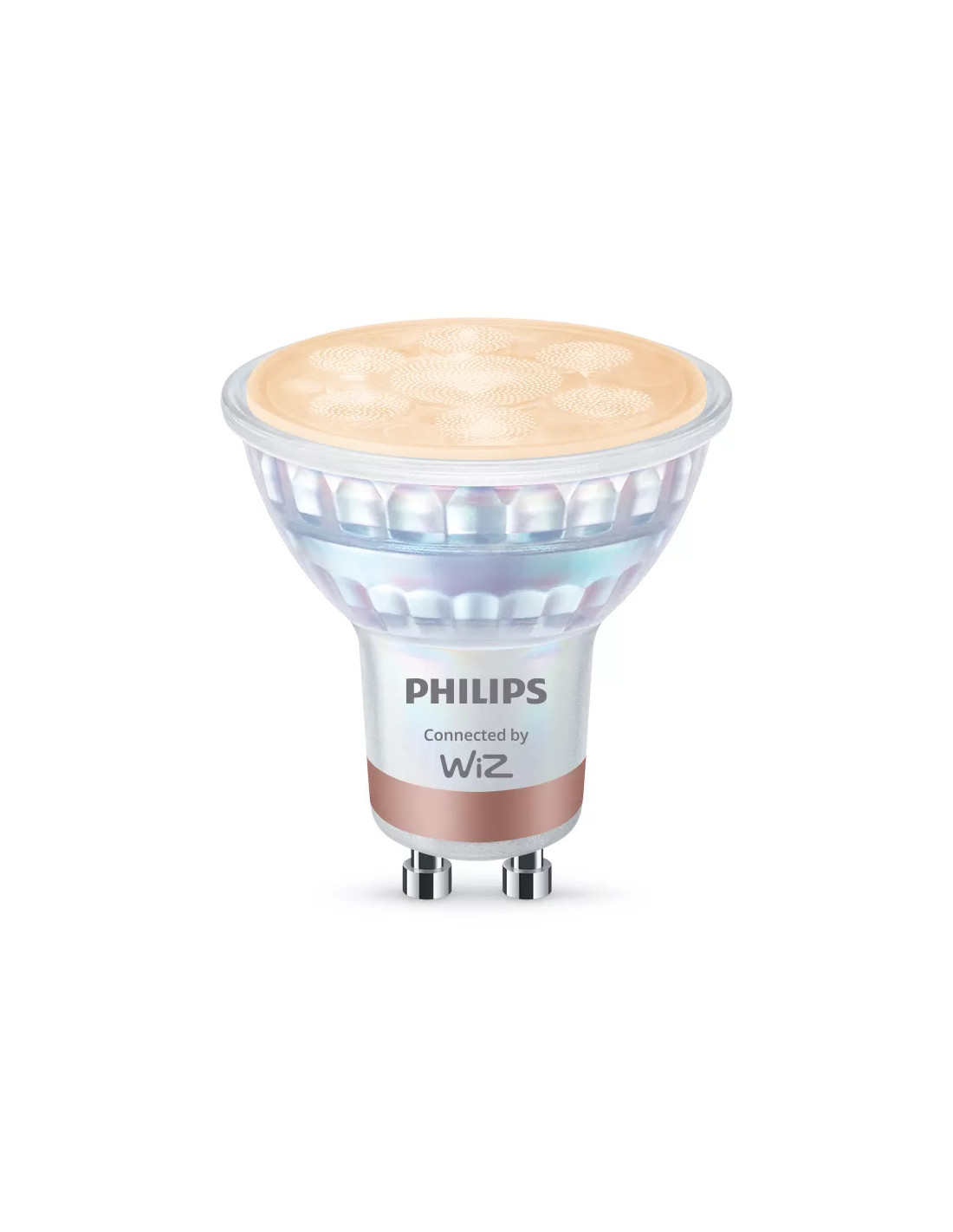 Philips Faretto 50 W PAR16 GU10. Tipo: Lampadina intelligente, Interfaccia: Wi-Fi/Bluetooth, Colore del prodotto: Bianco. Classe efficienza energetica: F, Voltaggio di ingresso: 220-240 V, Frequenza di ingresso AC: 50-60 Hz. Larghezza: 50 mm, Profondità: 55 mm, Altezza: 55 mm. Larghezza imballo: 70 mm, Profondità imballo: 70 mm, Altezza imballo: 160 mm. Quantità per pacco: 1 pz