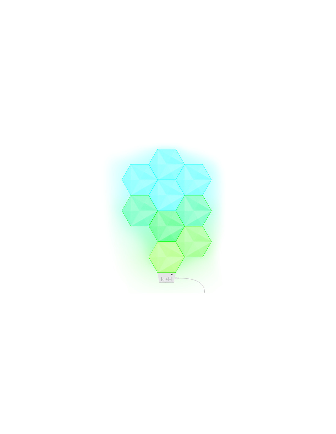 Dai un tocco di colore e freschezza alla tua stanza con il kit di base per pannelli luminosi esagonali RGB LED Vybz. Inizia il tuo viaggio nel mondo delle luci con la confezione da 9 pannelli, ampliabile fino a 21 pannelli con il kit di estensione da 3 pezzi. Largo al colore!