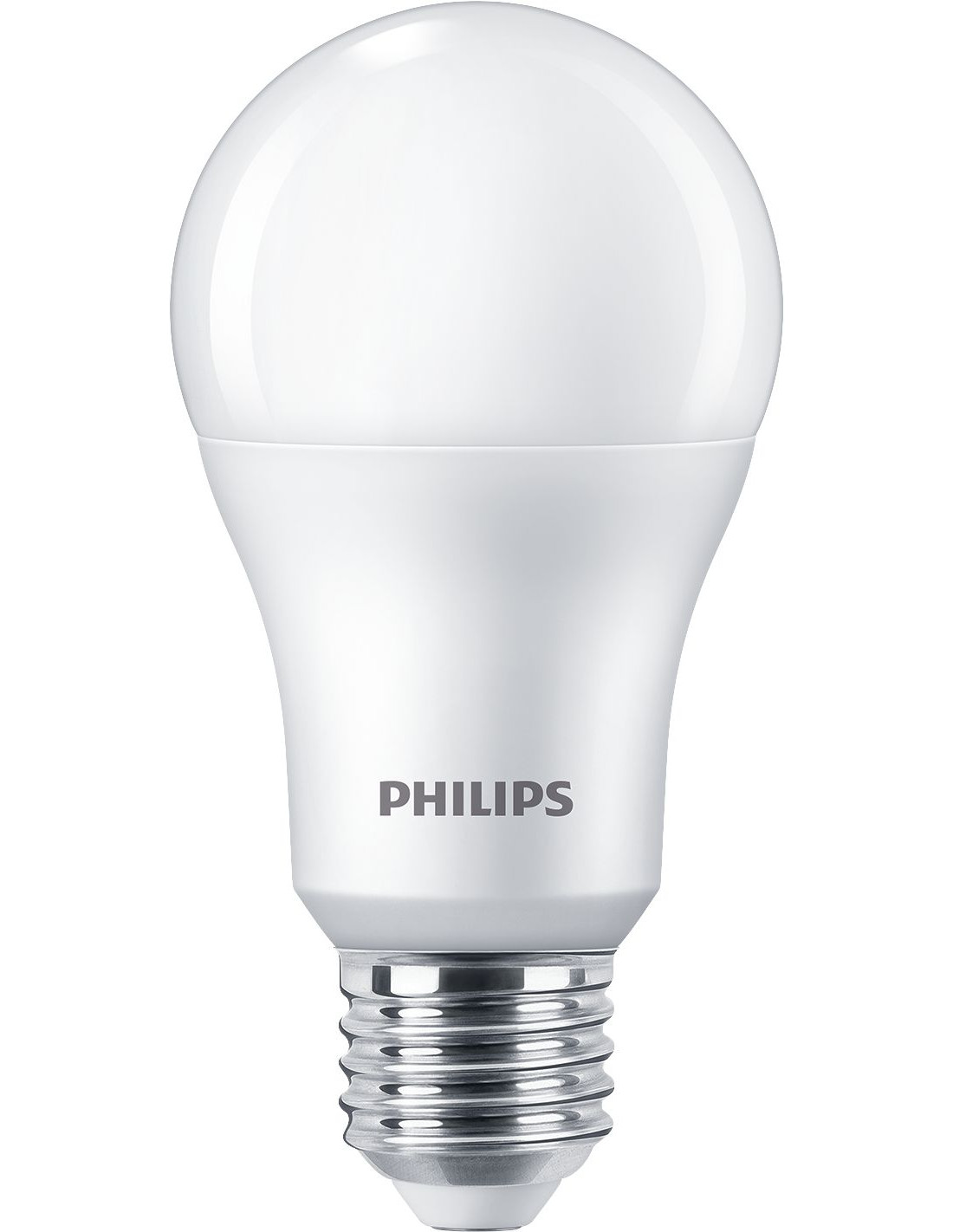 Philips Lampadina 100 W A60 E27. Potenza lampadina: 13 W, Lampadina di potenza equivalente: 100 W, Attacco lampada: E27, Flusso luminoso: 1521 lm, Durata della lampadina: 15000 h, Colore della luce: Bianco caldo, Temperatura colore: 2700 K, Angolo proiezione: 150°, Color Rendering Index (CRI): 80, Fattore di potenza: 0,6