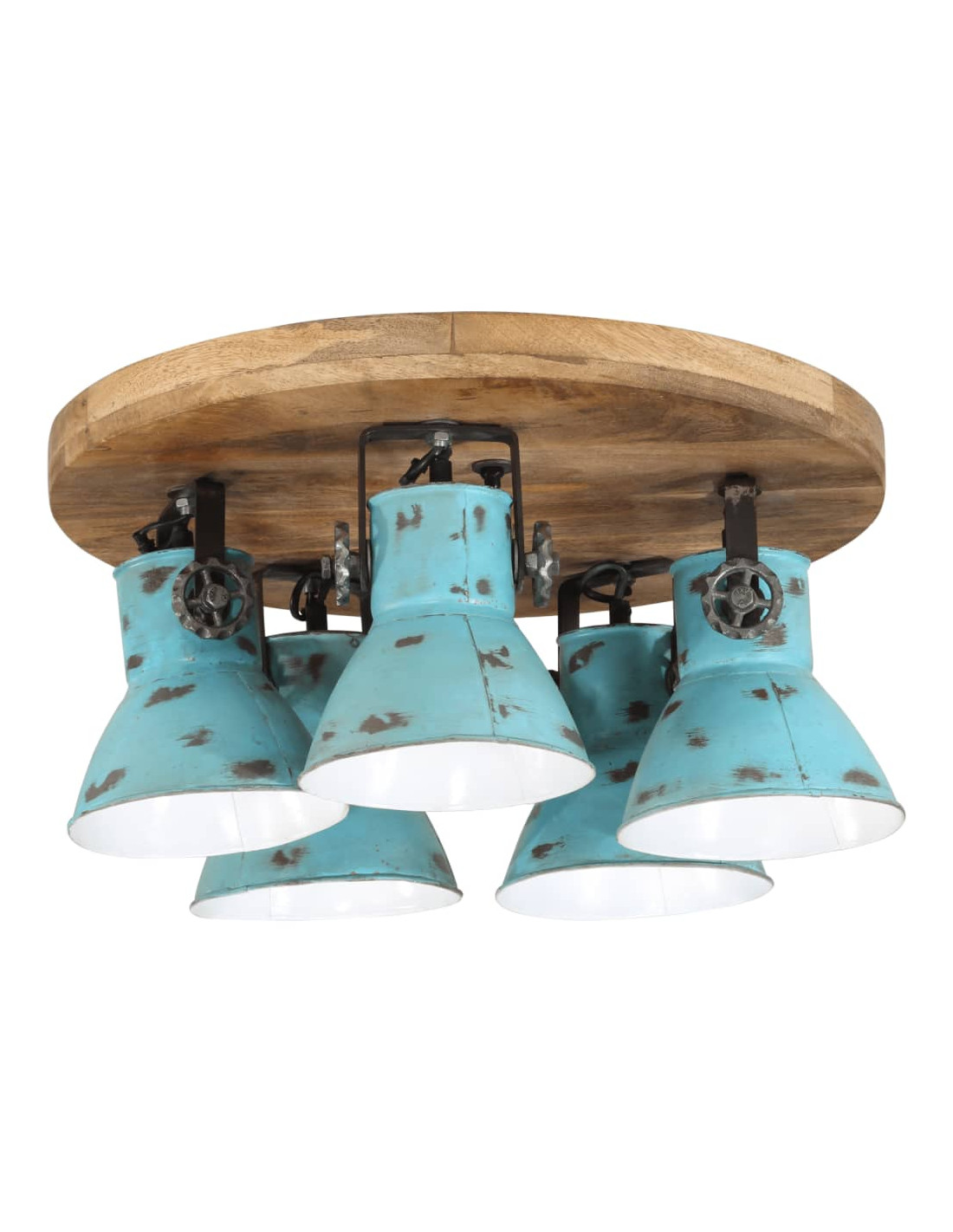 - Stile industriale: Le tonalità della lampada in ferro, dotata di una finitura color blu invecchiato, si adattano perfettamente agli interni rurali o industriali.