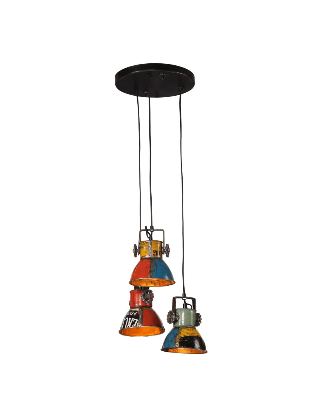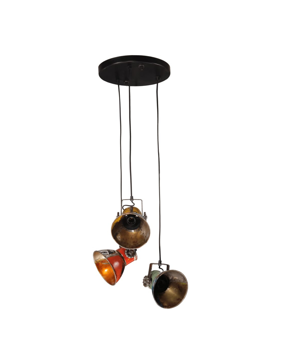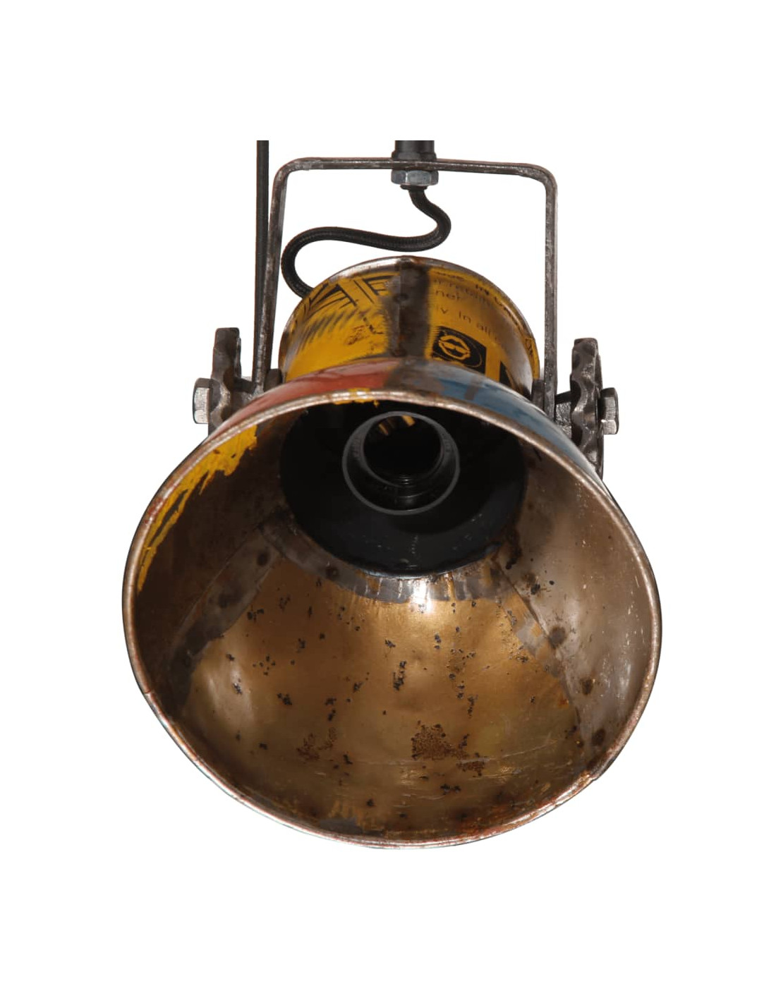 - Stile industriale: Il paralume in ferro, caratterizzato da una finitura di colori misti di recupero, si adatta perfettamente agli interni rurali o industriali.