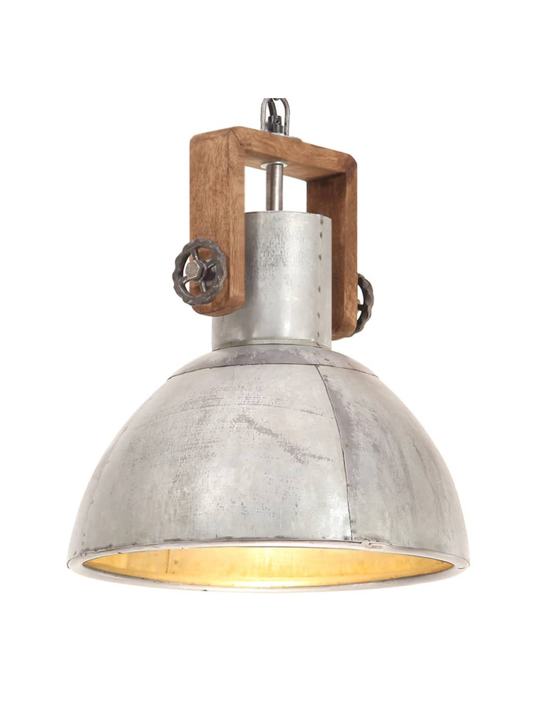 Il paralume in ferro, con rivestimento in argento e barra superiore in legno di mango con finitura colore marrone del granaio esposto alle intemperie, si adatterà perfettamente a un interno rurale o industriale. La lampada ha un attacco E27 per una lampadina di massimo 25 watt. Potete scegliere e installare lampadine E27 con vari colori della luce, creando un'atmosfera di relax e riposo. La consegna include anche i materiali di montaggio.