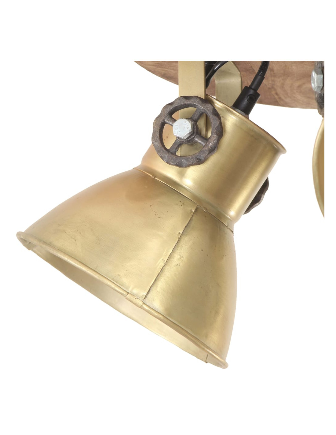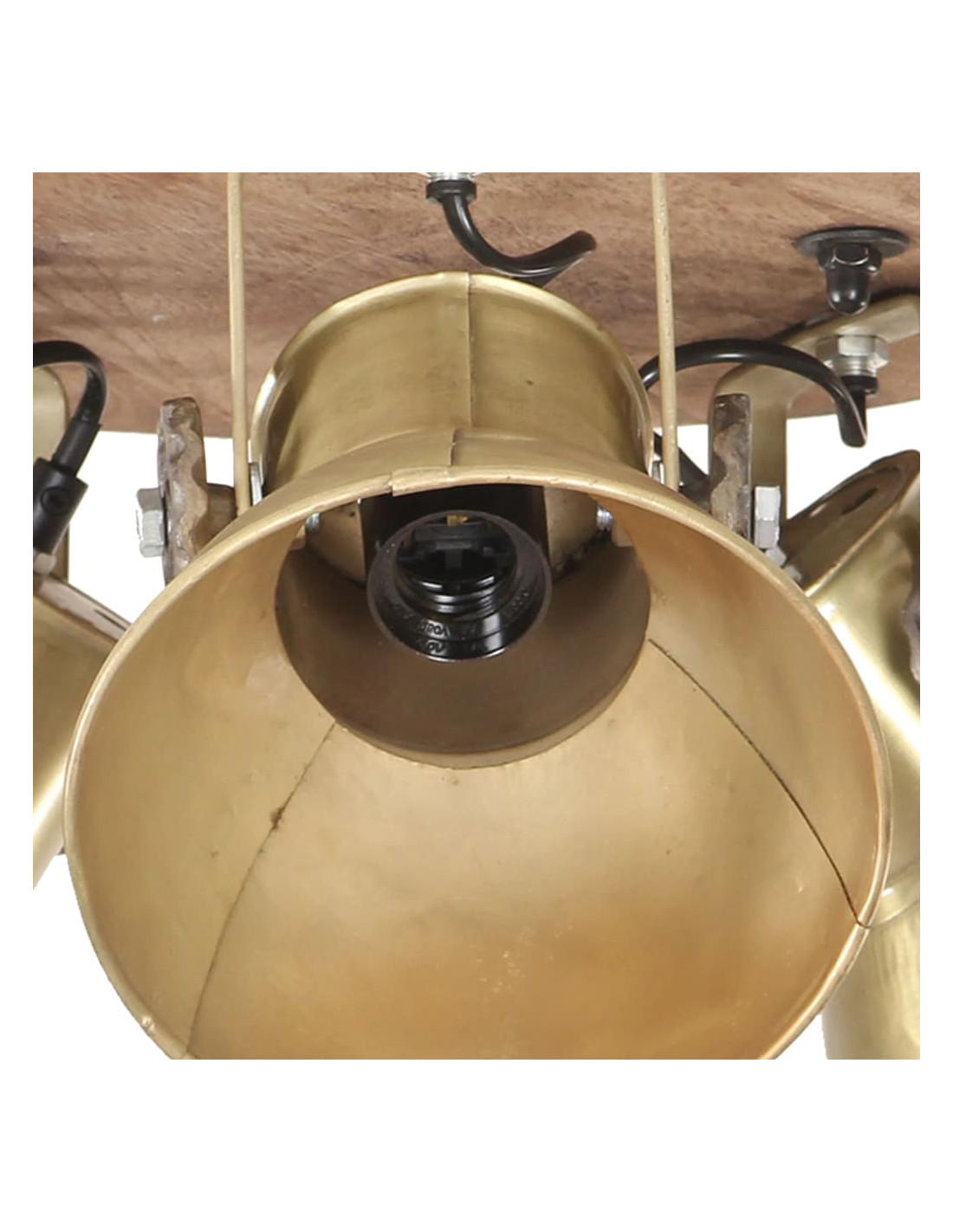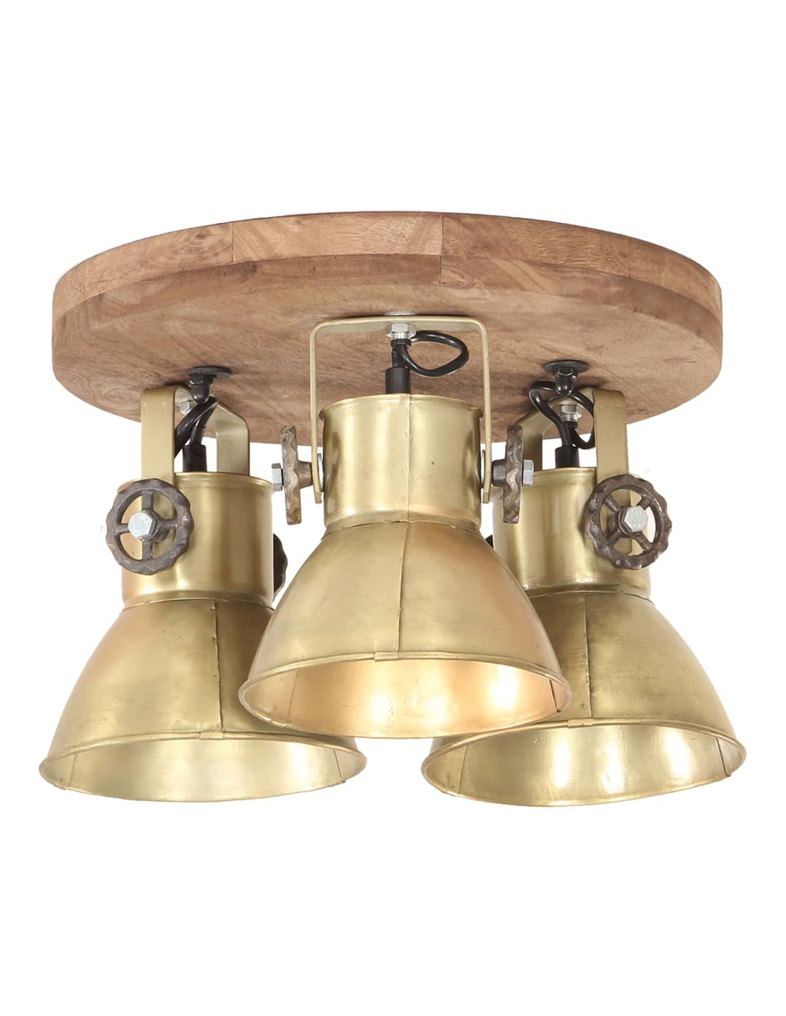 I paralumi in ferro, con finitura ottone vintage e legno massello di mango con finitura marrone granaio esposto alle intemperie, si adatteranno perfettamente a interni rurali o industriali. La lampada da soffitto, con 3 paralumi, ha un attacco E27 per una lampadina di massimo 25 watt. Potete scegliere e installare lampadine E27 con vari colori della luce, creando un'atmosfera di relax e riposo.