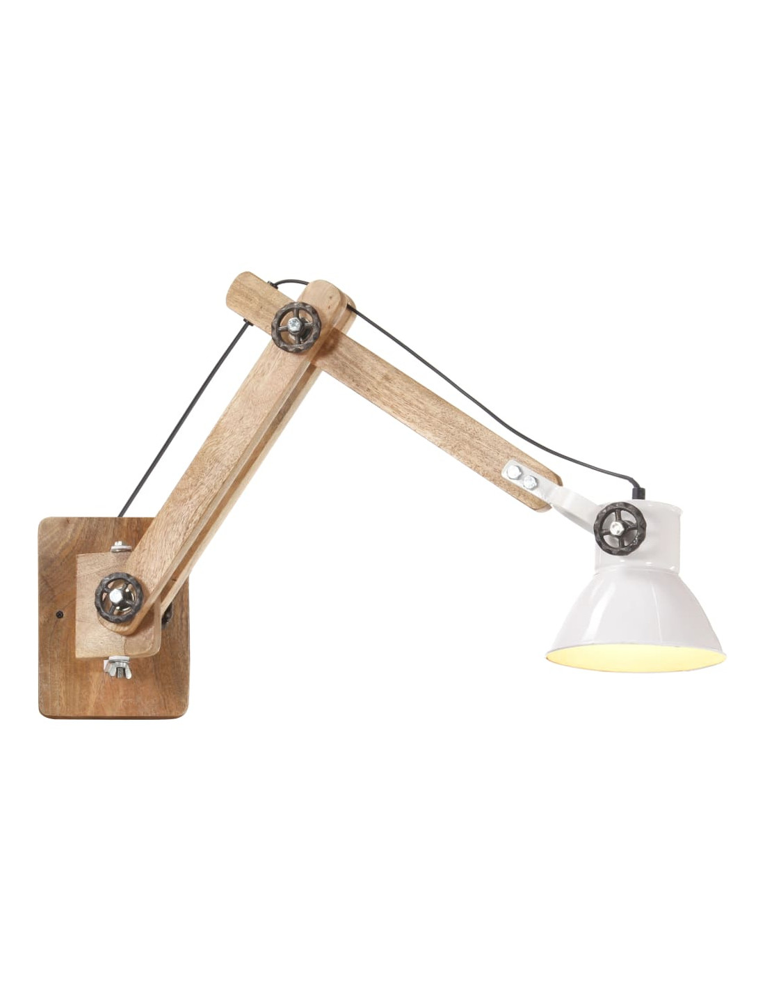 La lampada da parete è combinata con un braccio in legno massello di mango e un paralume in ferro, che la rendono resistente. Il braccio regolabile e flessibile consente di fissarlo a qualsiasi altezza desiderata. Inoltre, la finitura naturale sulla struttura in legno con la finitura con verniciatura a polvere bianca sul paralume conferisce uno stile industriale alla lampada. Questa lampada da lettura è dotata di bassa tensione e può essere a risparmio energetico.