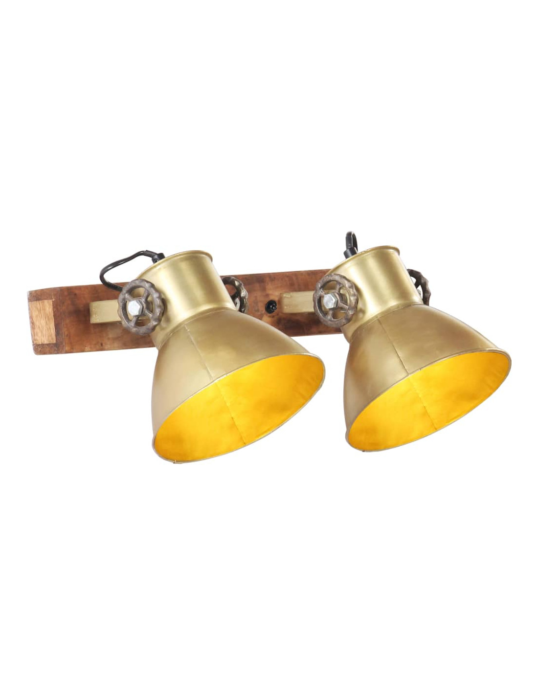 I paralumi in ferro, con finitura ottone anticato e legno massello di mango con finitura marrone granaio esposto alle intemperie, si adatteranno perfettamente a interni rurali o industriali. La lampada, con 2 paralumi, ha un attacco E27 per una lampadina di massimo 25 watt. Potete scegliere e installare lampadine E27 con vari colori della luce, creando un'atmosfera di relax e riposo. Inoltre, potete fissare questa lampada al soffitto.