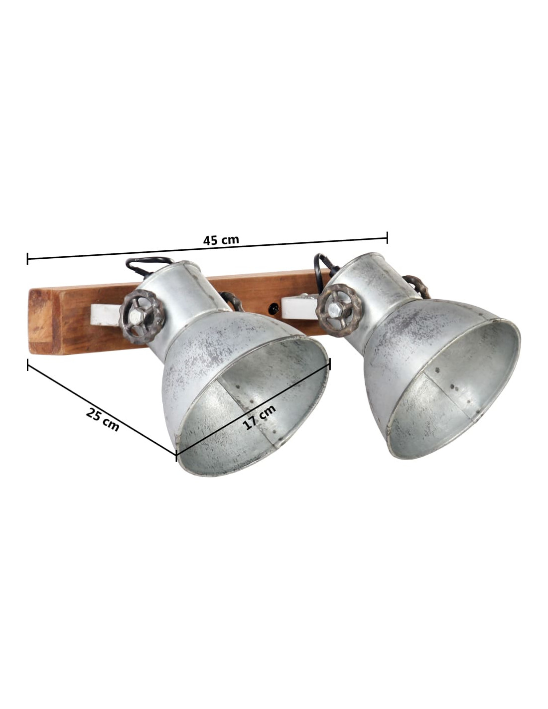 I paralumi in ferro, con finitura lota vintage e legno massello di mango con finitura marrone granaio esposto alle intemperie, si adatteranno perfettamente a interni rurali o industriali. La lampada, con 2 paralumi, ha un attacco E27 per una lampadina di massimo 25 watt. Potete scegliere e installare lampadine E27 con vari colori della luce, creando un'atmosfera di relax e riposo. Inoltre, potete fissare questa lampada al soffitto.