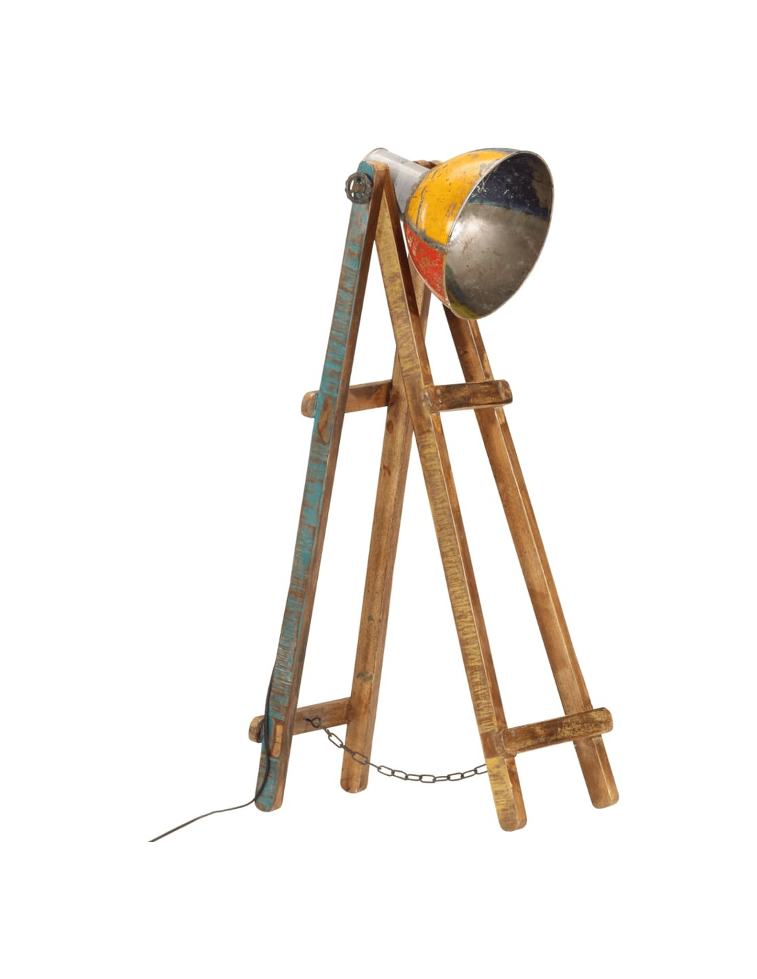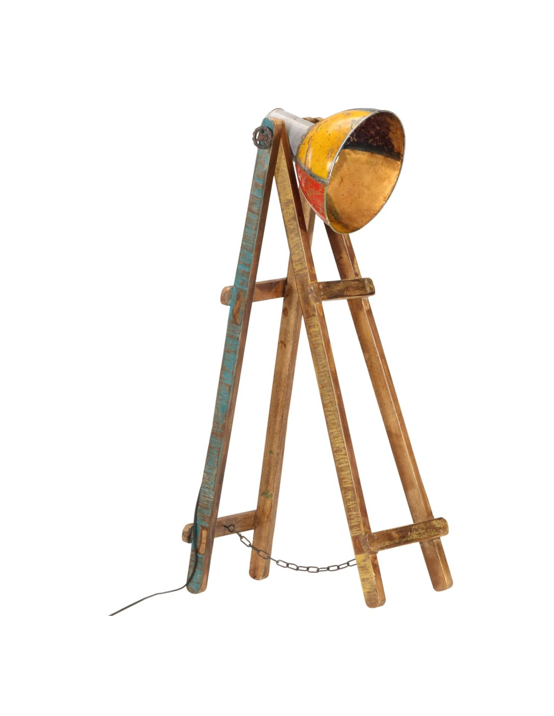- Stile industriale: La lampada angolare in ferro, con una finitura in colori misti e il legno massello di mango, si adatta perfettamente agli interni rurali o industriali.