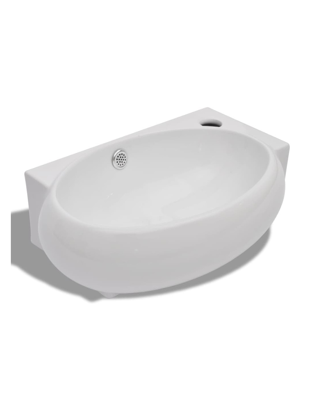 Realizzato in ceramica di qualità, il lavabo non si graffia e non si scheggia. Resistente alla corrosione e durevole, è anche facile da pulire. Il lavabo è adatto per essere montato sul piano di lavoro o fissato al muro. Grazie al foro di troppo pieno, non è necessario preoccuparsi per l'acqua che fuoriesce.