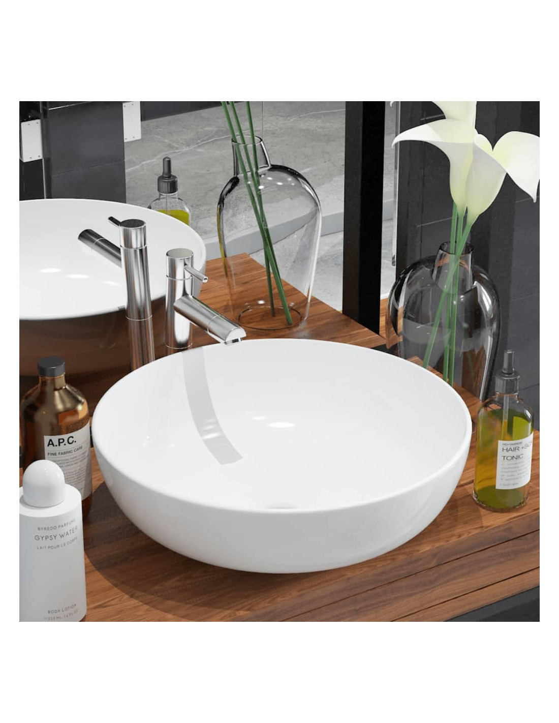 Questo lavandino tondo in ceramica di alta qualità, darà un tocco di stile al vostro bagno, gabinetto o toilette per signore. Ha una superficie lucida e si presenta con un design moderno ma elegante.