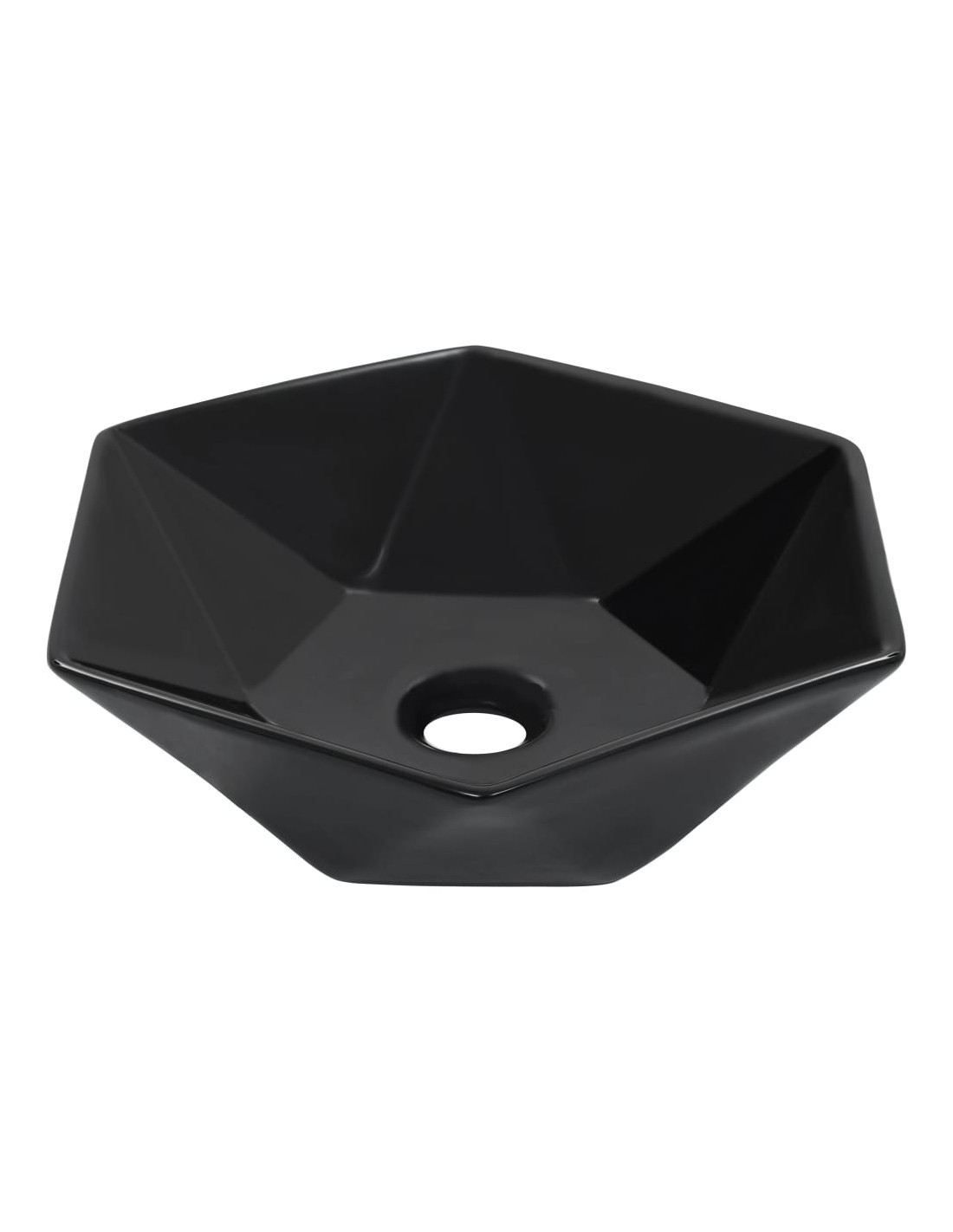 Realizzato in ceramica, questo lavabo a forma esagonale costituisce un'aggiunta elegante e senza tempo a qualsiasi stanza da bagno, toilette, guardaroba o lavatoio.