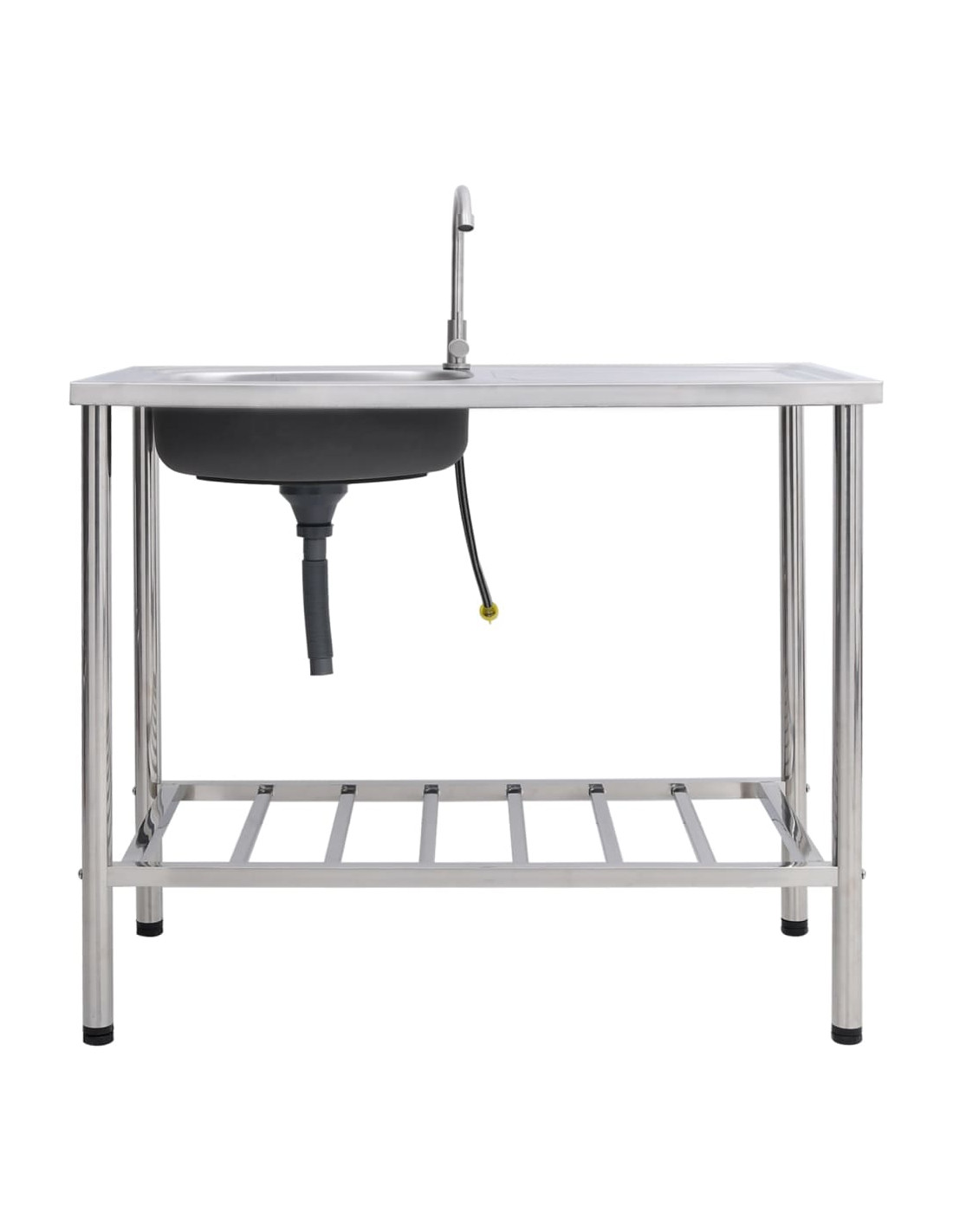 Questo lavello da campeggio ha una grande vasca con scolapiatti e un rubinetto, ed è la scelta perfetta per l'uso all'esterno.