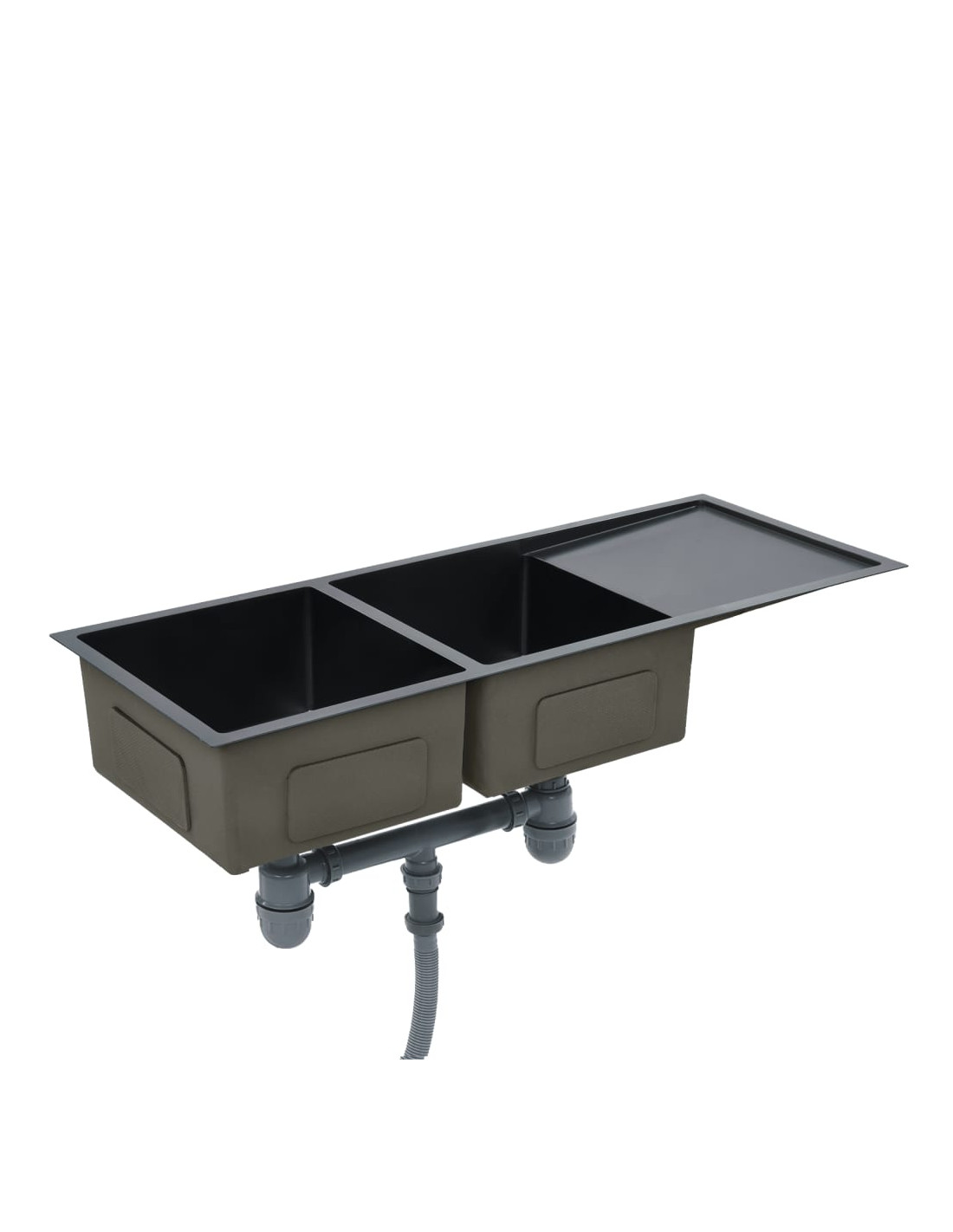 Combinando il meglio in termini di funzionalità e design, questo lavello a due vasche è realizzato in acciaio inossidabile lavorato a mano di alta qualità con vernice anticondensa, antimuffa, senza piombo e resistente alla corrosione. È insonorizzante, con pad di riduzione del suono. Lo sgocciolatoio tornerà molto utile non solo quando si lavano i piatti a mano, ma anche come spazio extra per tagliare le verdure. Inoltre, la vasca con un esclusivo design a X-flume facilita il flusso rapido, prevenendo l'acqua stagnante sul fondo della vasca.