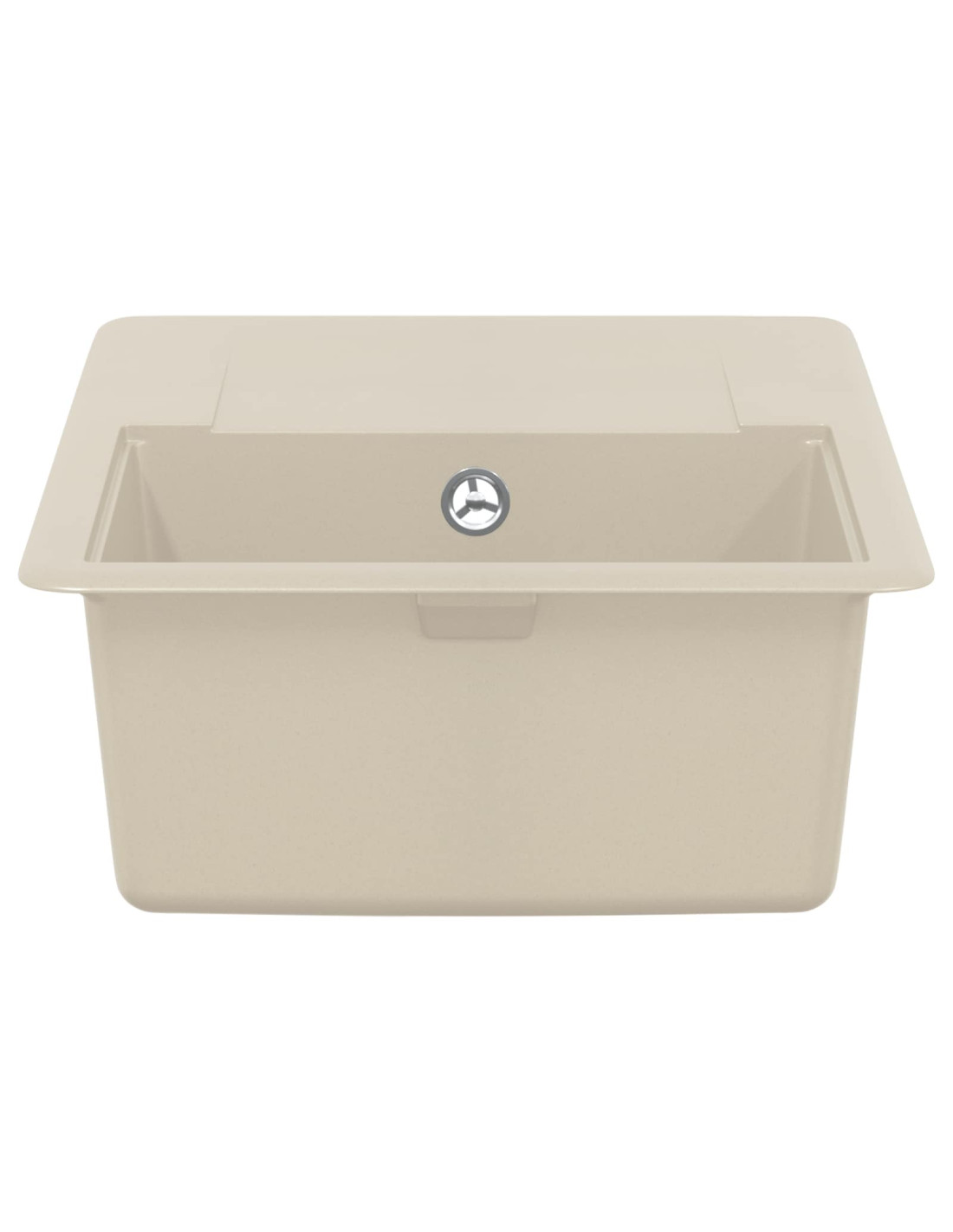 - Realizzato in granito: Questo lavello è fatto di granito, famoso per la sua robustezza e capacità di resistere a calore, graffi e macchie. Un materiale solido che aggiunge eleganza e durevolezza, ideale per cucine impegnate dove ci sono pasti da preparare e piatti da lavare.