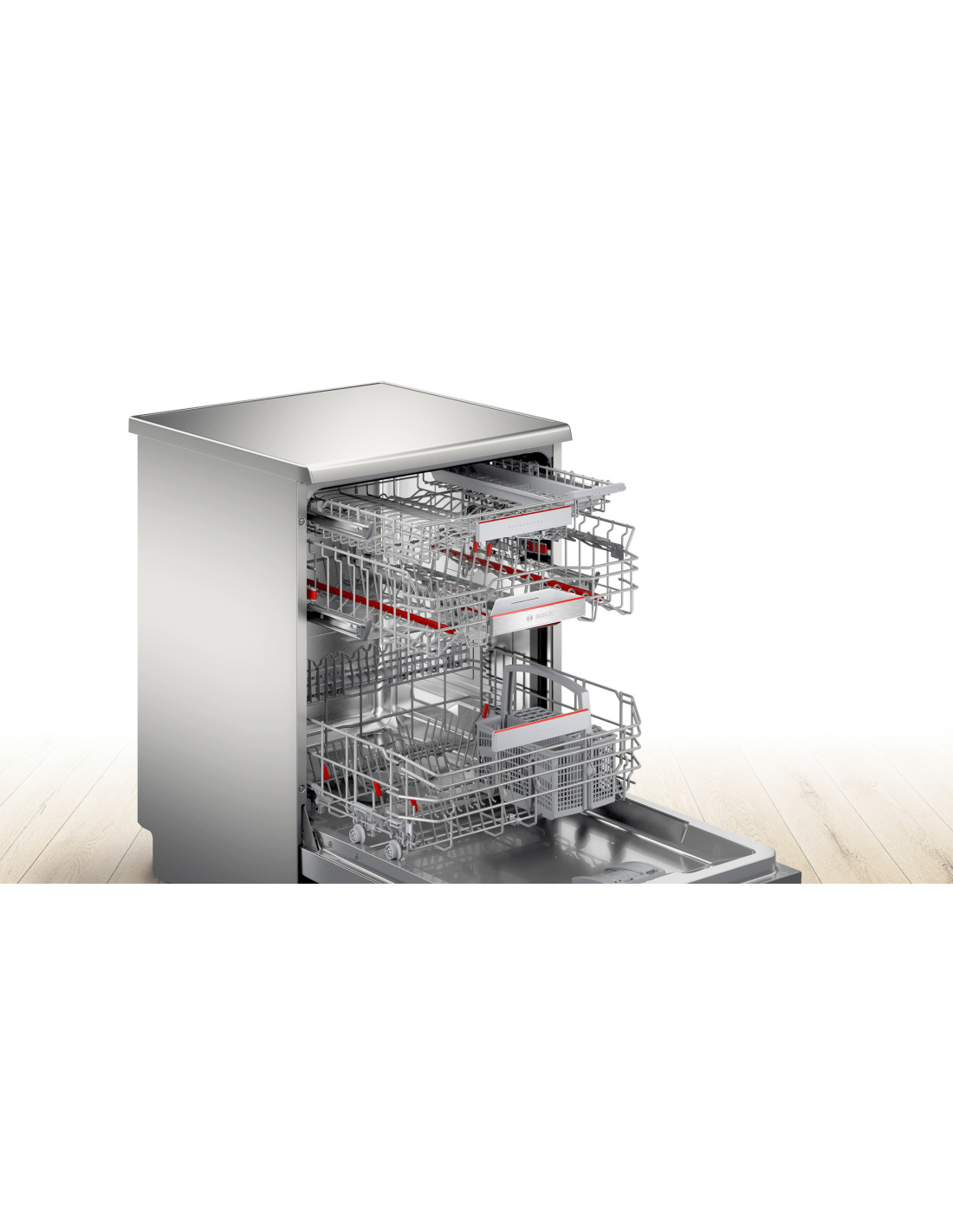 Posizionato sopra il cestello superiore, il terzo cestello Extra Space ti offre spazio in più per utensili da cucina grandi e piccoli, ciotole poco profonde, misurini e molto altro. È dotato di un vano portacoltelli mobile, che aumenta la capacità di carico del cestello sottostante. Più flessibilità di carico per le tue stoviglie più piccole.