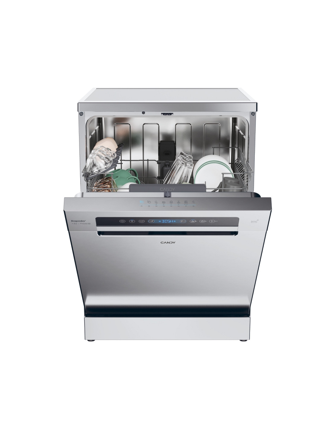Candy Rapido' è la lavastoviglie più veloce e spaziosa del mercato. È dotata di un'ampia gamma di cicli rapidi adatti a ogni esigenza, che semplificano l'utilizzo quotidiano anche grazie alla MAXI-TUB: la vasca più spaziosa in dimensioni standard per caricare le stoviglie più grandi.