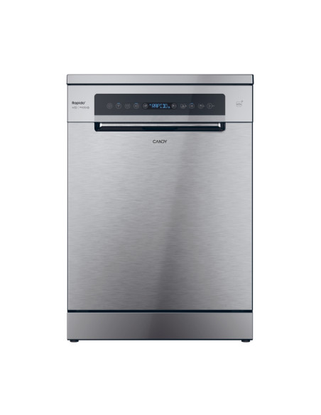 Candy RapidÓ CF 6B4S1PX. Posizionamento dell'apparecchio: Libera installazione, Dimensione: Dimensione massima (60 cm), Colore della porta: Acciaio inox. Numero di coperti: 16 coperti, Classe emissione rumore: B, Emissione acustica: 44 dB. Applicazioni per il controllo supportate: hOn. Classe efficienza energetica: B, Consumo di acqua per ciclo: 9,5 L, Consumo energetico per 100 cicli: 66 kWh. Larghezza: 597 mm, Profondità: 598 mm, Altezza: 850 mm