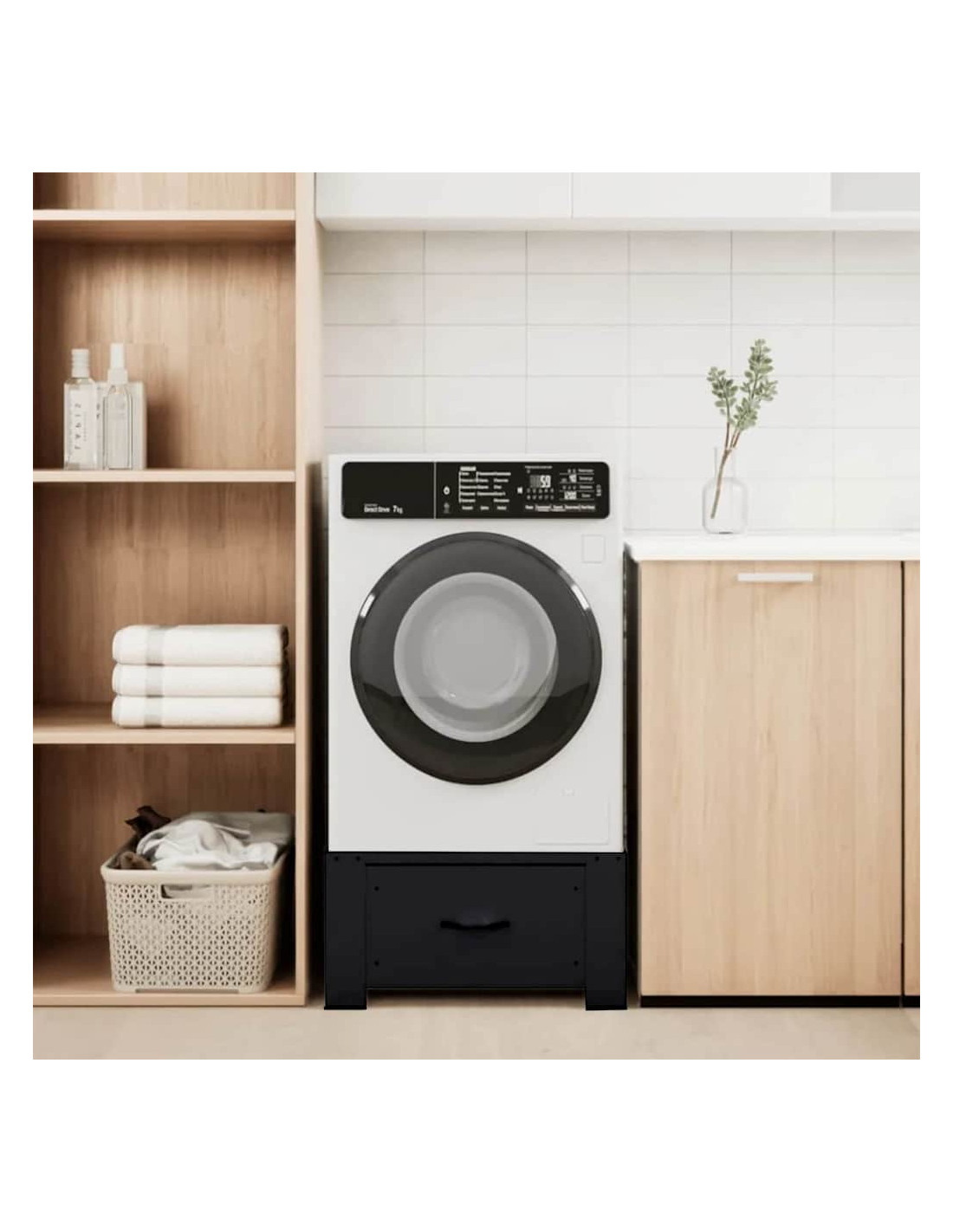 Questo supporto per lavatrice Moderno solleva i tuoi elettrodomestici a un'altezza che fa bene alla schiena, riducendo la fatica quando carichi e scarichi. Ideale per migliorare l'aspetto della lavanderia, la sua struttura in acciaio dona un tocco moderno a qualsiasi ambiente. È progettato solo per l'uso interno, offrendo una soluzione sia pratica che stilosa per mantenere una buona postura e facilitare le operazioni quotidiane.