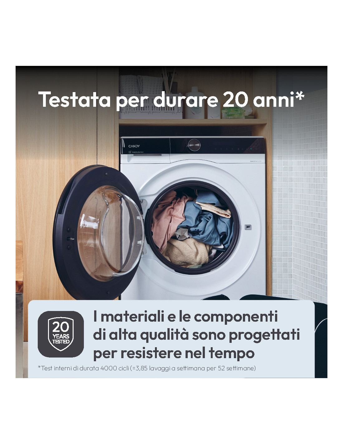 Nata per essere pronta a qualsiasi sfida di lavaggio, la lavatrice Candy ProWash 700 lava rapidamente i tuoi indumenti con il minimo consumo di energia e acqua, grazie alla funzione ProActive EcoWash, in un cestello XL sempre pulito. Estremamente silenziosa e intuitiva grazie al display LCD. ProWash 700 insieme all'app hOn, è progettata per trasformare il tuo bucato nell'esperienza più piacevole di sempre.