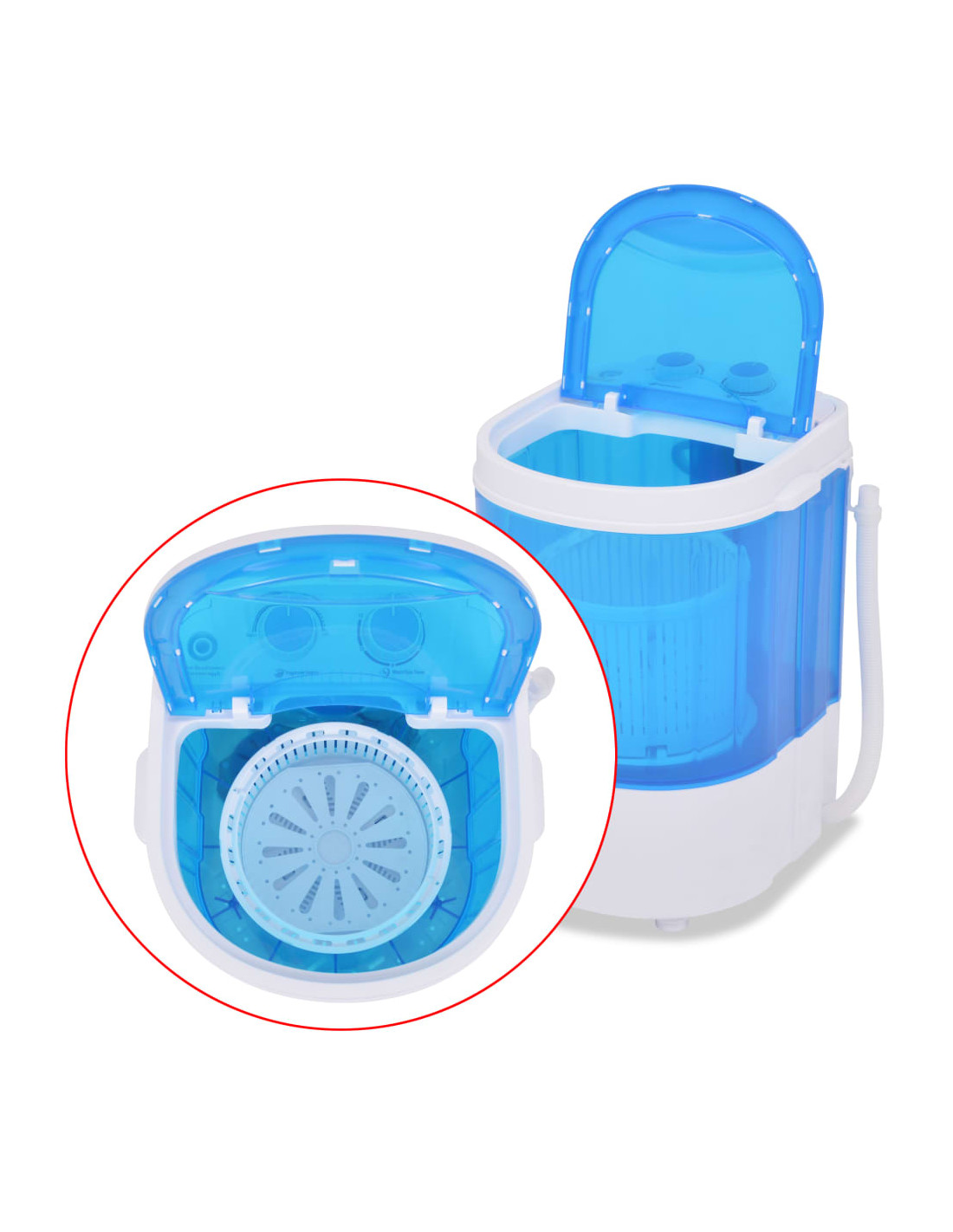 Questa lavatrice ha una capacità di lavaggio di 2,6 kg e una capacità di centrifuga di 2,6 kg. Il suo timer incorporato di 15 minuti spegne automaticamente la macchina dopo ogni ciclo di lavaggio e centrifuga. Grazie alla comoda maniglia è molto facile da trasportare ed è perfetta per essere utilizzata in viaggio o in campeggio.