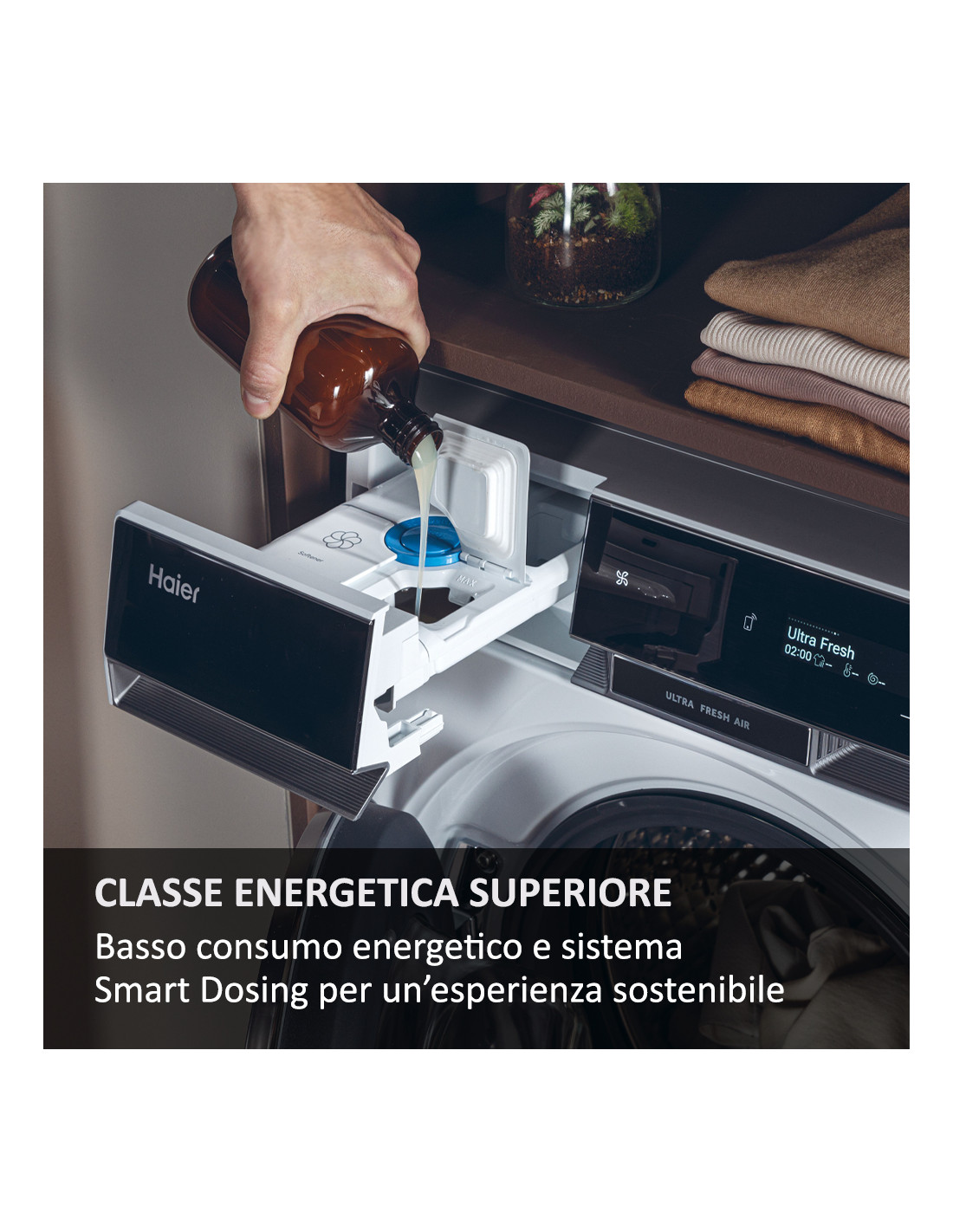 Grazie alla funzione Ultra Fresh Air, la lavatrice immetterà aria fresca - prelevata dall'esterno - all'interno del cestello, eliminando l'umidità e prevenendo la formazione di muffe e cattivi odori. I tuoi capi rimarranno freschi e puliti come appena lavati fino a 12 ore. Ma non è tutto: la funzione AutoDose e il nuovo schermo TFT agevolano l’impostazione dei cicli di lavaggio, permettendoti di dedicare più tempo a ciò che ami.