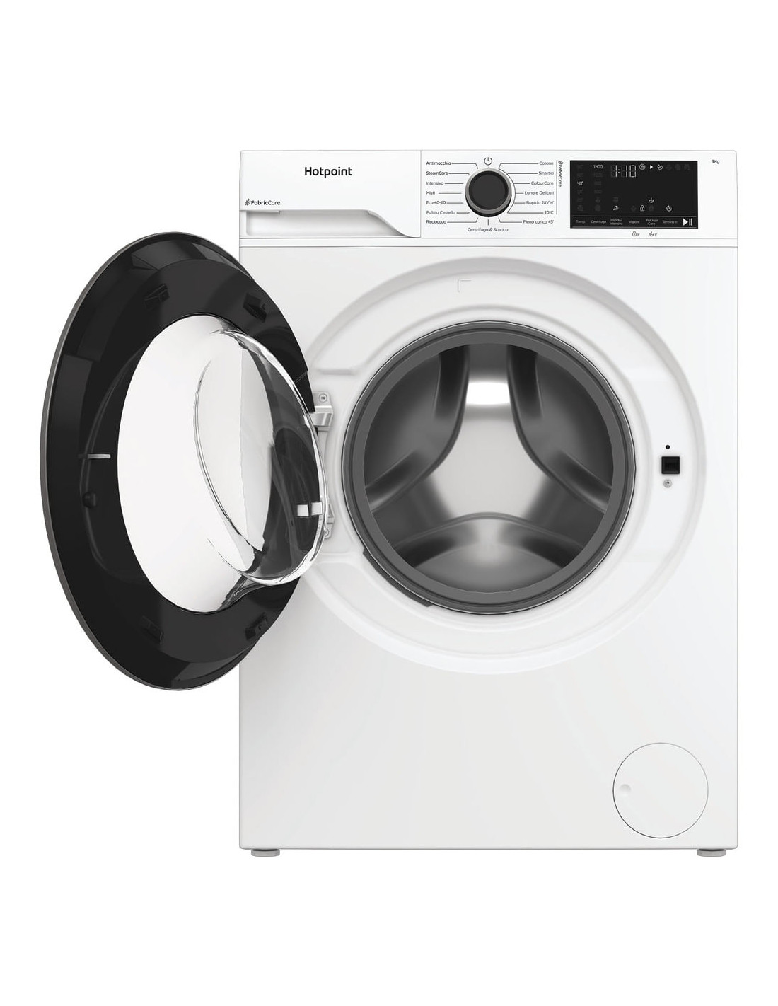 Questa lavatrice a carica frontale Hotpoint Ariston, a libera installazione, offre un capiente cestello da 9 kg, ideale anche per i carichi più voluminosi. Con un'efficienza energetica A-30%, garantisce consumi ancora più ridotti: ti permette di risparmiare fino al 30% di energia rispetto alla soglia minima per accedere alla classe A. La centrifuga raggiunge i 1400 giri/minuto, assicurando risultati rapidi ed efficaci. Il design, elegante e pulito, è caratterizzato dal classico colore bianco, che si adatta facilmente a qualsiasi ambiente domestico.