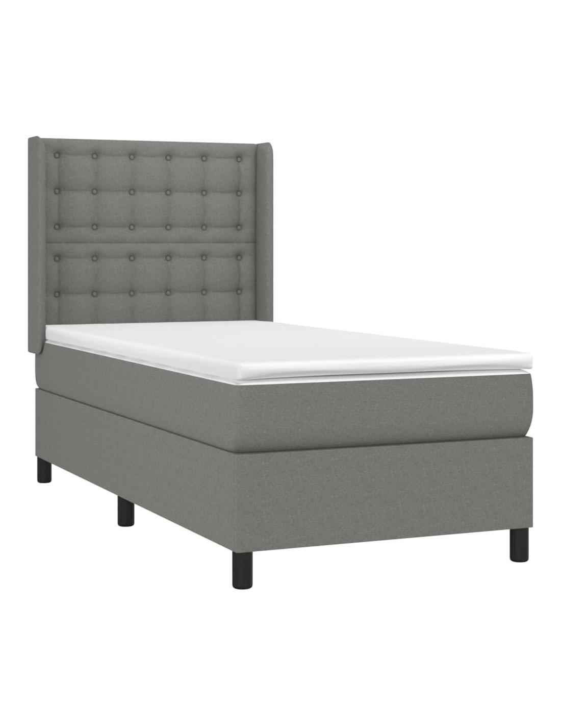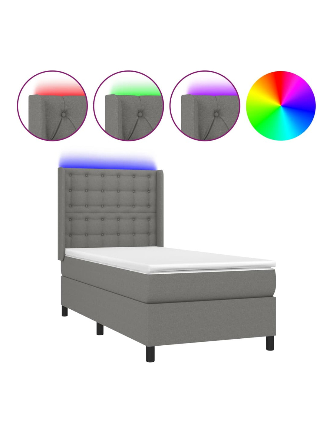 Letto a Molle Materasso e LED Grigio Scuro 90x200 cm in Tessuto
