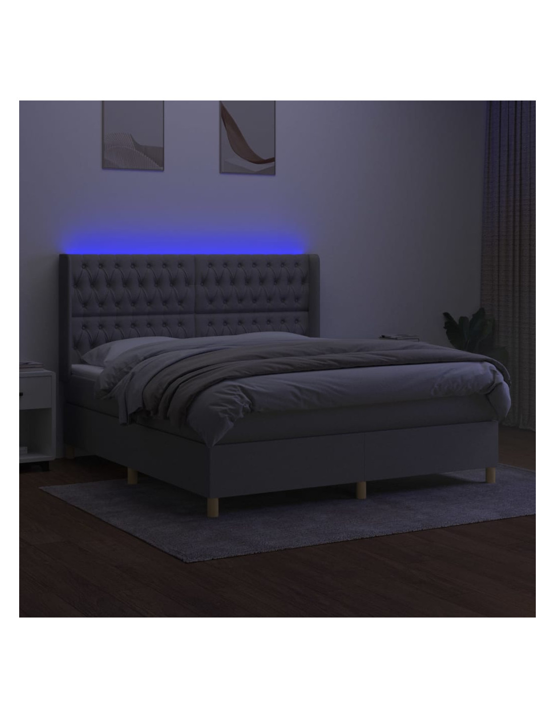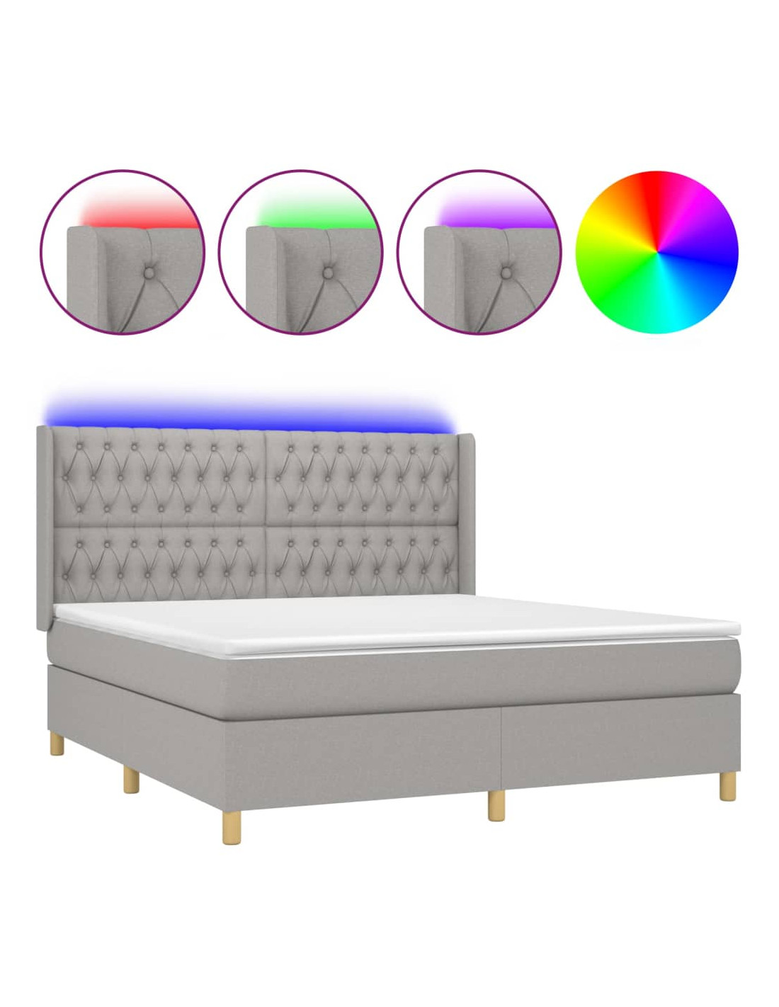 Letto a Molle Materasso e LED Grigio Chiaro 160x200 cm Tessuto