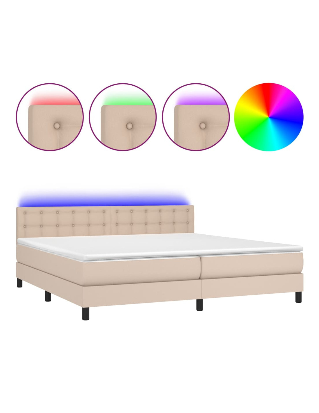 Giroletto Molle Materasso e LED Cappuccino 200x200cm Similpelle