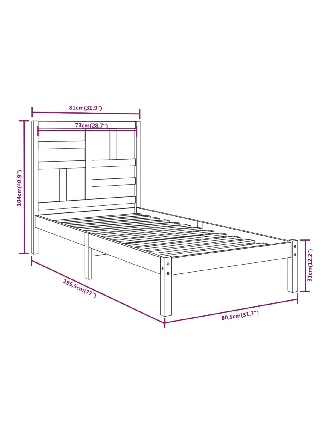 - Dimensioni del materasso adatto: 75 x 190 cm (P x L) (2FT6 Small Single) (il materasso non è incluso)