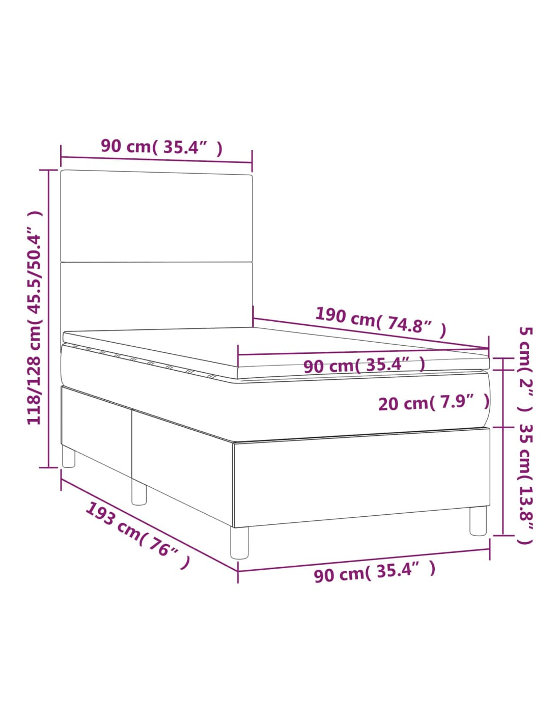 - Dimensioni: 90 x 190 x 20 cm (L x P x A)