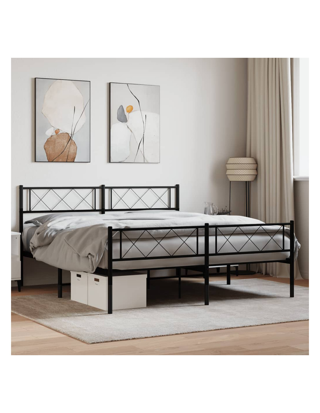 Giroletto con Testiera e Pediera Metallo Nero 140x200 cm
