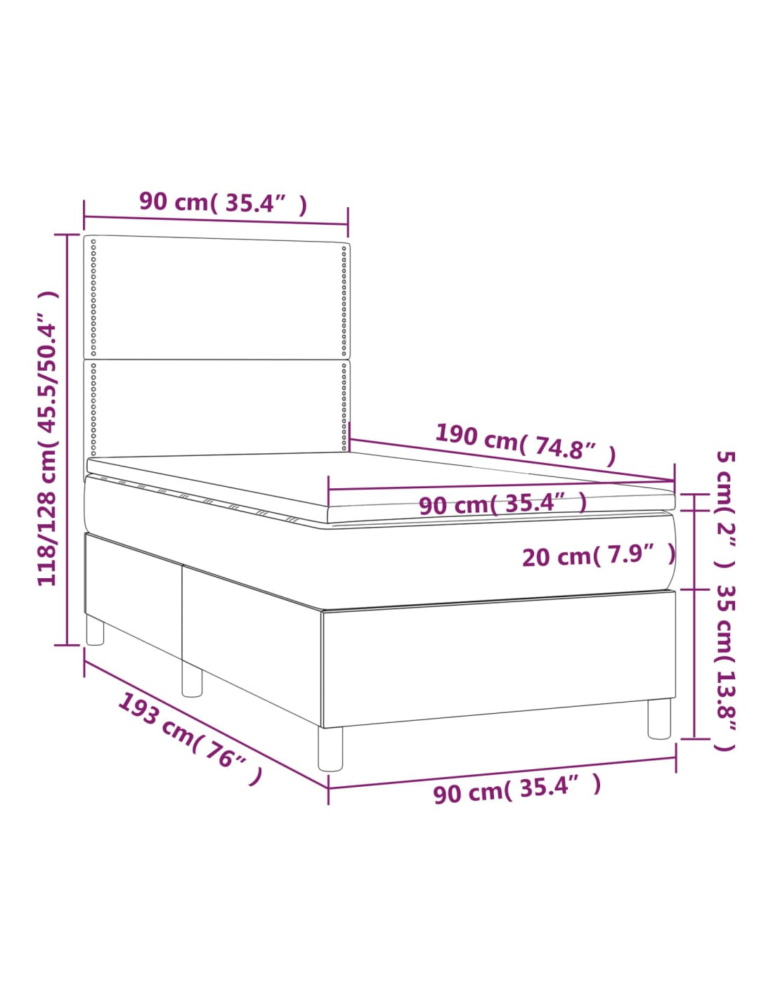 - Dimensioni: 90 x 190 x 20 cm (L x P x A)