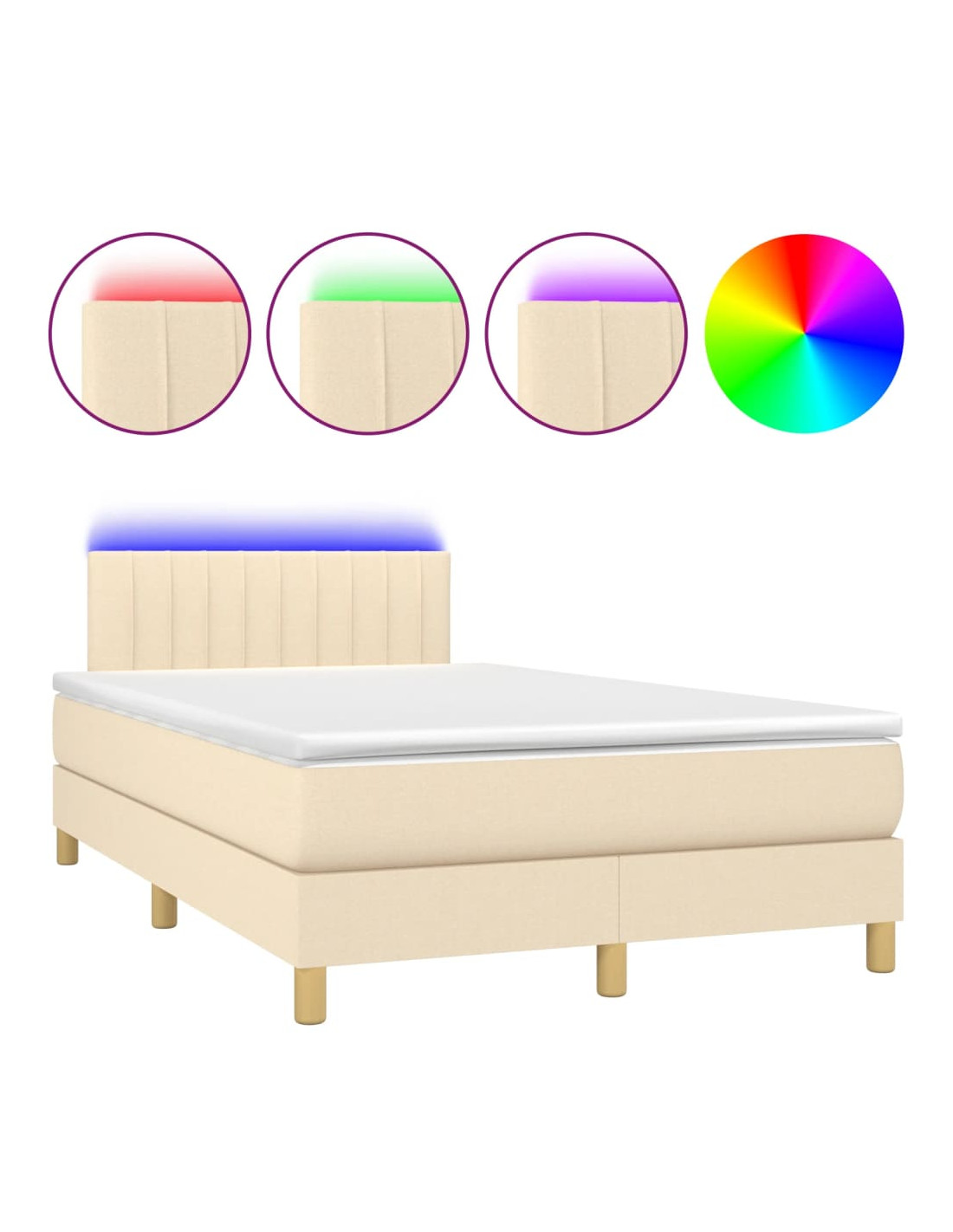 Letto a Molle con Materasso e LED Crema 120x190 cm in Tessuto