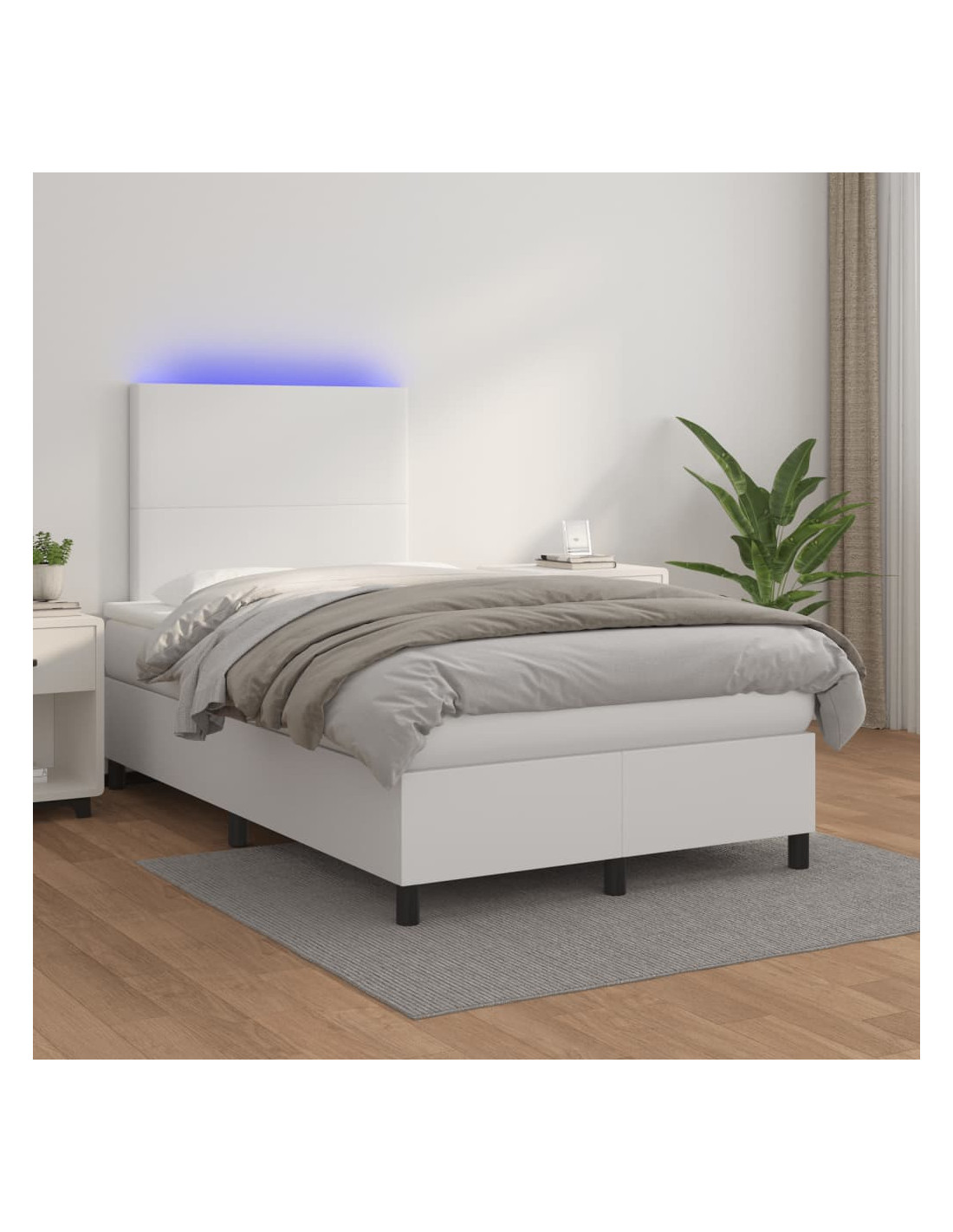 Giroletto Molle con Materasso e LED Bianco 120x190cm Similpelle
