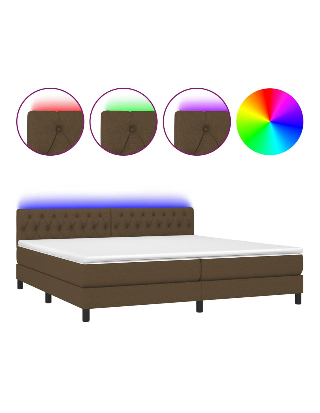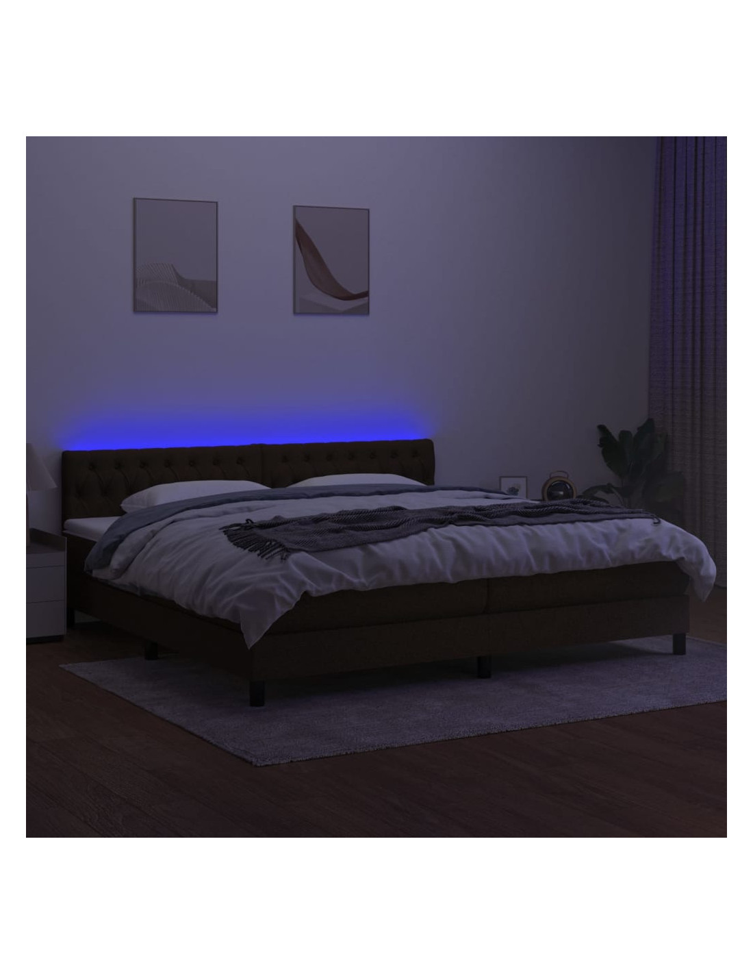 Letto a Molle Materasso e LED Marronescuro 200x200cm in Tessuto