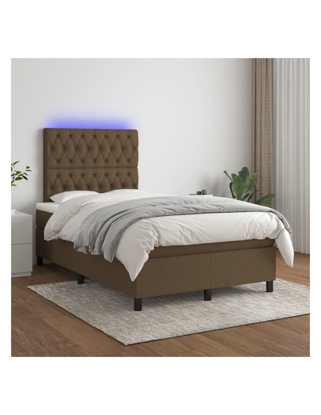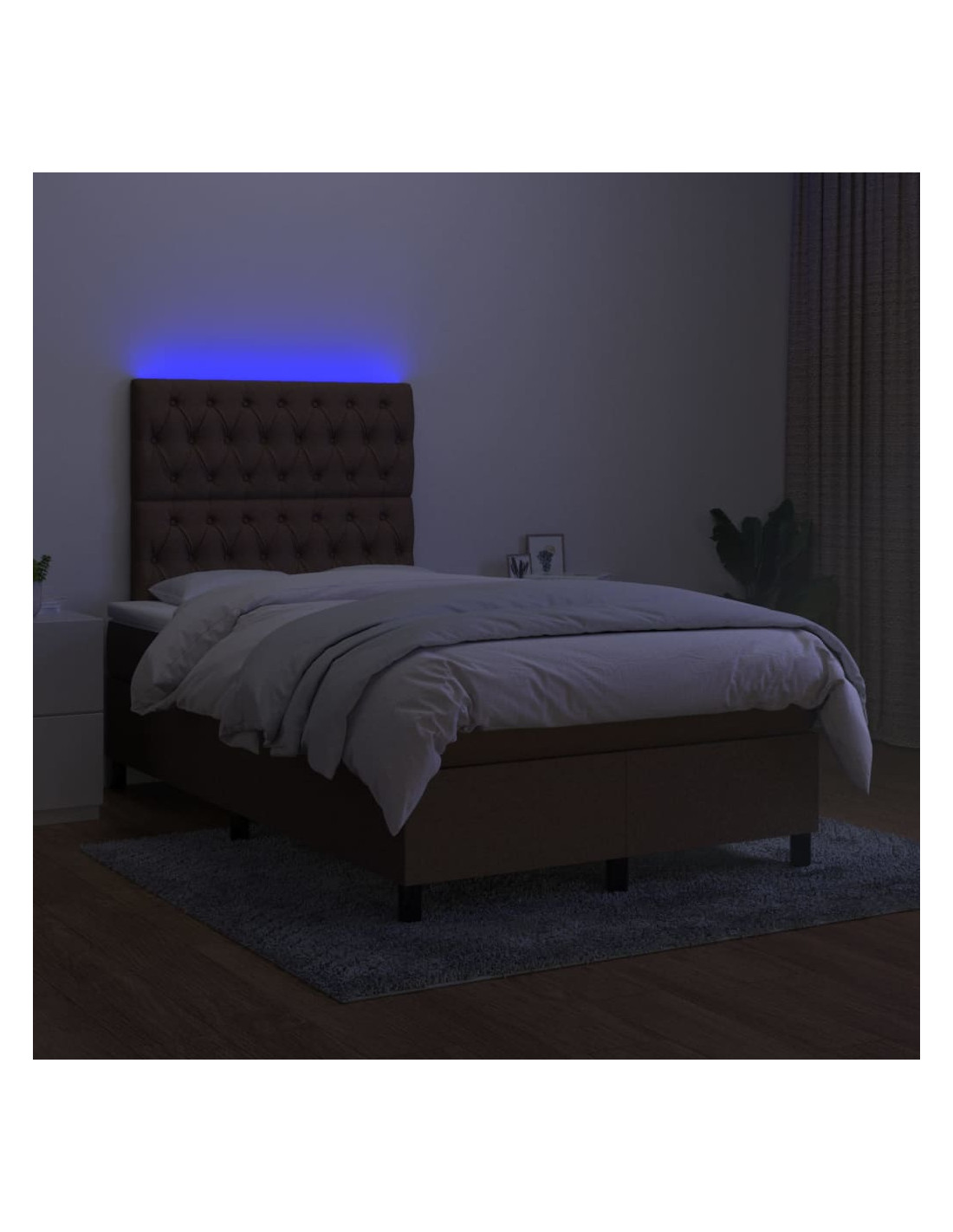 Letto a Molle Materasso e LED MarroneScuro 120x190cm in Tessuto
