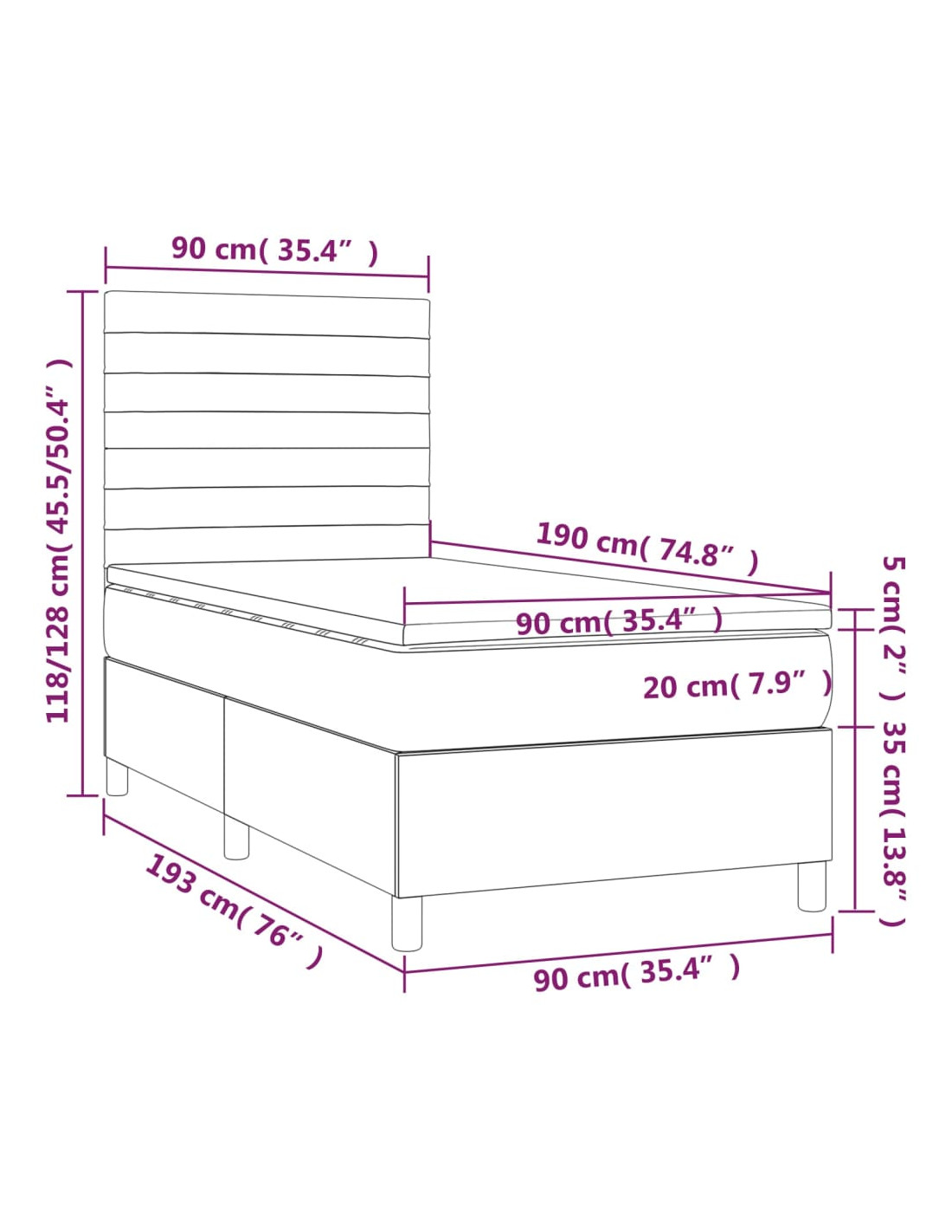- Dimensioni: 90 x 190 x 20 cm (L x P x A)